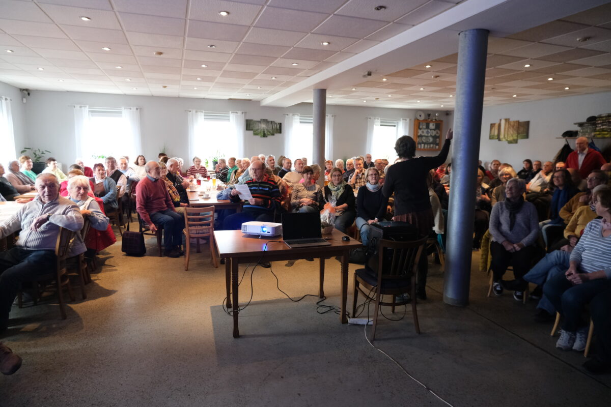 Etwa eine Stunde lauschten die Anwesenden gebannt den Erzählungen der sechs Zeitzeuginnen und Zeitzeugen. Die persönlichen Geschichten sorgten teils für Betroffenheit, besonders die Vertreibung und die Angst vor den Nationalsozialisten waren prägende Erlebnisse. Daneben sorgten heitere Episoden für einhelliges Lachen im Publikum. Oft hörte man ein leises: „Ja, genauso war es!“. Für die größtenteils einheimischen Besucher war es eine Zeitreise in die eigene Geschichte.