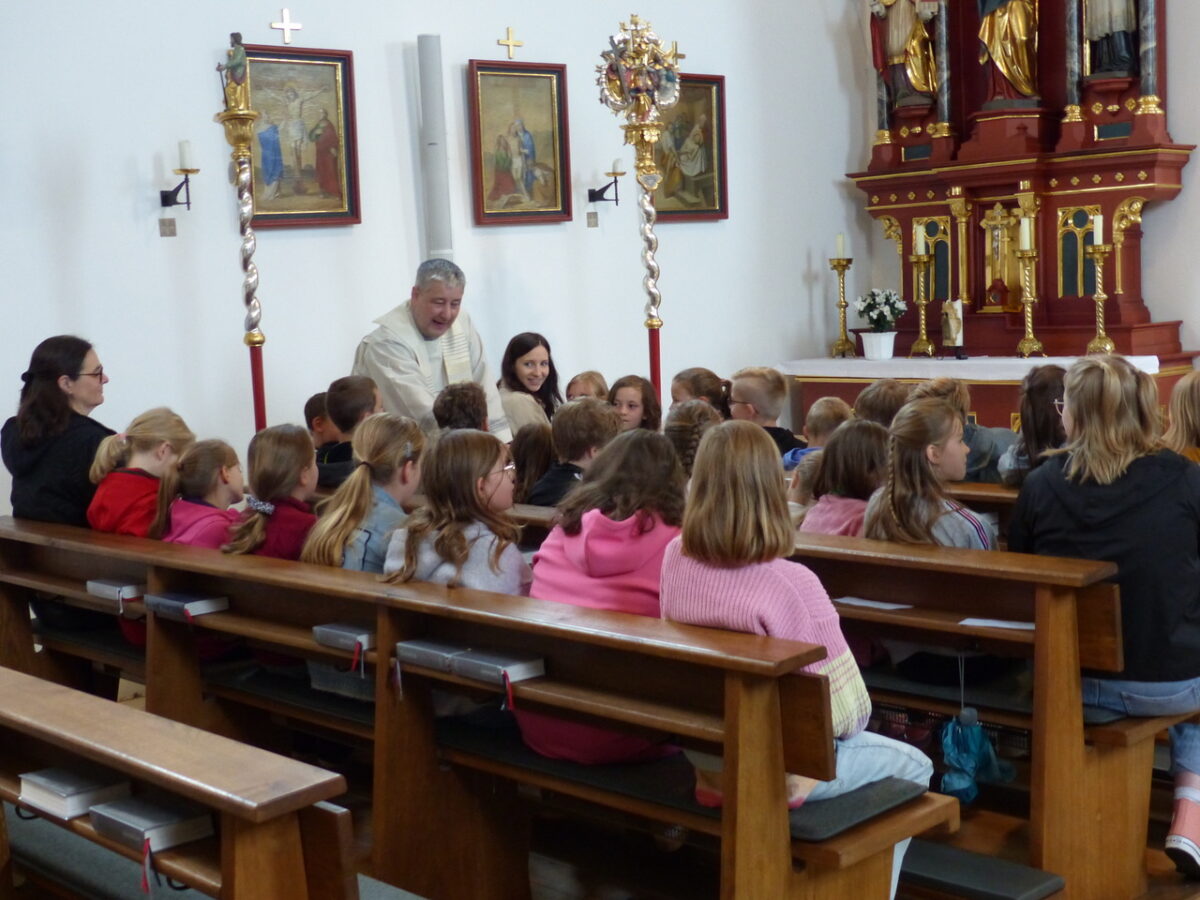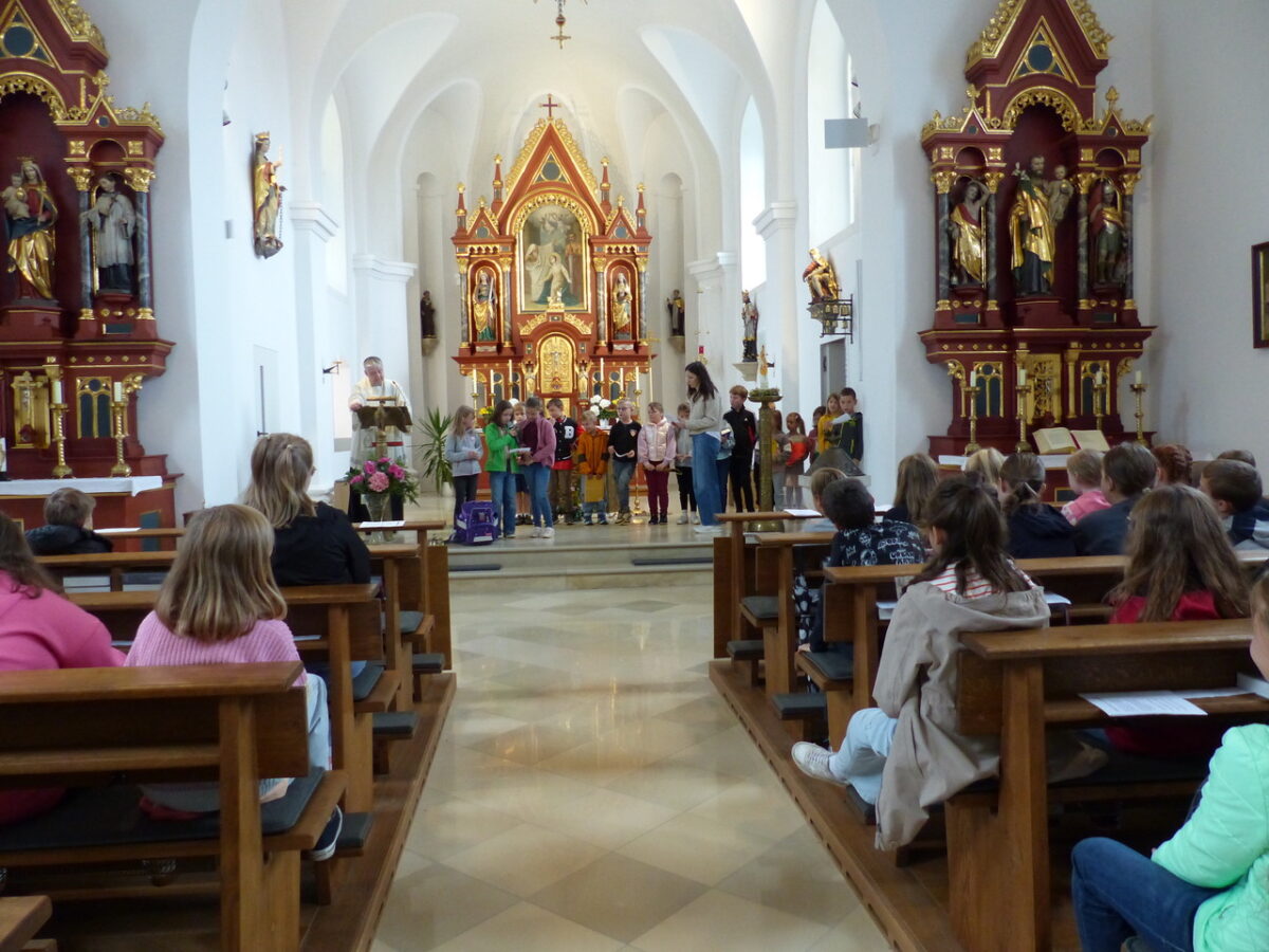 Die Andacht wurde auch von Eltern, Großeltern und dem Bürgermeister Anton Kappl besucht, was die Bedeutung der Veranstaltung für die Gemeinde unterstrich. Am Ende der Feier richtete Schulleiterin Katja Meidenbauer Worte des Dankes an Pfarrer Nieciecki und überreichte ihm als Zeichen der Wertschätzung ein Fotobuch. Sie dankte ihm für die gemeinsame Zeit und wünschte ihm für seinen Ruhestand alles Gute. Pfarrer Nieciecki bedankte sich seinerseits bei der Schulgemeinschaft und erteilte allen seinen Segen, verbunden mit guten Wünschen für die Zukunft.