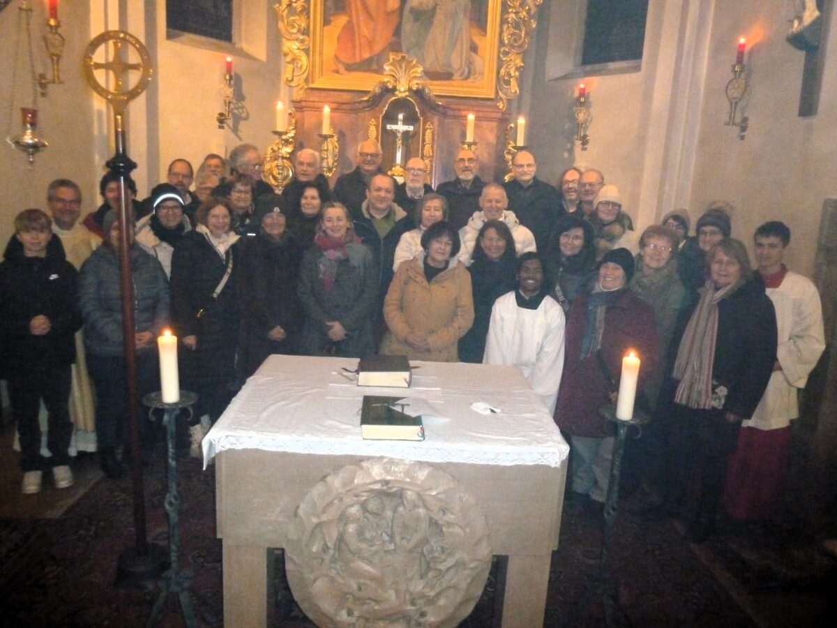 Simone Spiegler wirkte als Kantorin, Sieglinde Kurz als Lektorin und Konrad Spiegler als Kommunionhelfer mit. Stadtpfarrer Markus Schmid betonte bei seiner Predigt im Hintergrund der Friedensfahne, wie wichtig es ist, nach dem Vorbild des Heiligen „Flagge zu zeigen“ und seiner inneren Stimme mehr zu folgen als undurchsichtigen Botschaften. Beim Gottesdienst wurde auch an die Verstorbenen des Fördervereins St. Sebastian gedacht. Dieser hat sich für den Erhalt der Kirche in besonderer Weise eingesetzt.