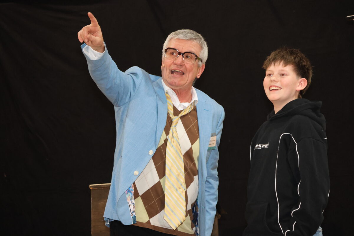 Schließlich durfte Finn aus dem Publikum auf die Bühne kommen, beim Reimen helfen und sein Lieblingsgedicht über die Ritterschaft vortragen.