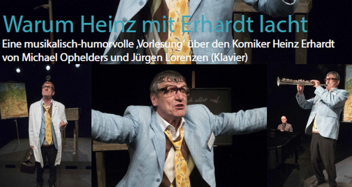 Hinter dem Titel “Warum Heinz mit Erhardt lacht” verbirgt sich eine musikalisch-humorvolle Hommage von und mit Schauspieler Michael Ophelders. In einer kurzweiligen, abendfüllenden Revue referiert, rezitiert und deklamiert Michael Ophelders Texte des unvergessenen Heinz Erhardt: vom “Blümchen” über die “Made” bis zum “Ritter Fips”. Zum anderen sind aber auch Lieder von der “Tante Hedwig” über das “Wicke-Wacke-Wucke Lied” bis hin zum “Bobby Schick” zu hören, die den geneigten Zuhörern neben Leben und Wirken auch die oft vernachlässigte musikalische Seite des berühmten Dichters Heinz Erhardt näherbringen. Freuen Sie sich auf einen amüsanten Abend “mit Bildungsanspruch” frei nach dem Motto: “Wer sich selbst auf den Arm nimmt, erspart anderen die Arbeit.”