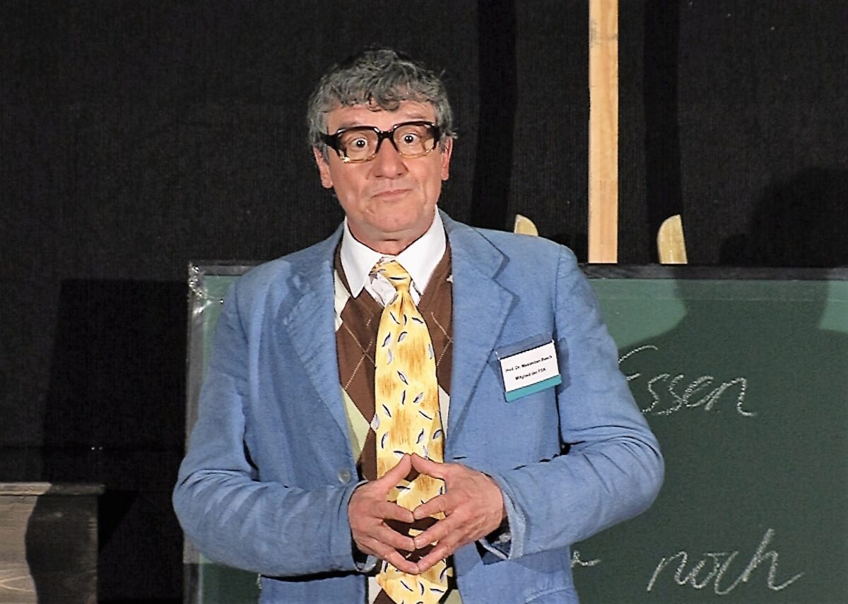 „Pointenreicher Wortwitz, Gedichte und Lieder zum Niederknien komisch, so kennt man Heinz Erhardt. Michael Ophelders bringt ihn uns in einer “humorvollen Vorlesung” näher und vermeidet zum Glück, den großen Meister einfach nur zu kopieren. Stattdessen doziert er als urkomischer Uni-Prof. über das Leben und Schaffen des großen Humoristen und zitiert dessen Gedichte und Lieder mit eigenem Witz! Das Publikum hält sich vor Lachen den Bauch und fordert vom Professor mehrere Zugaben!“ (TV – Trier)
