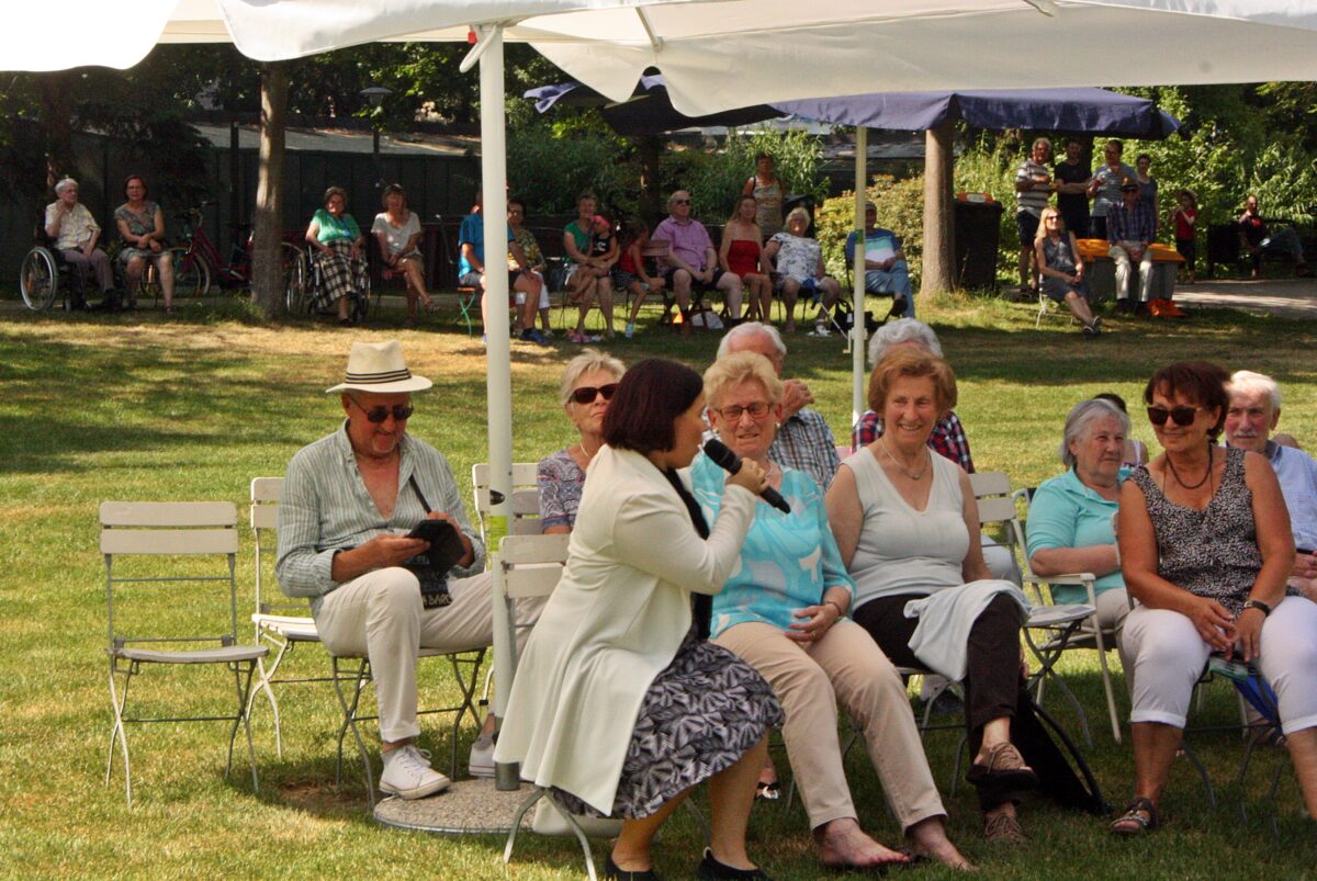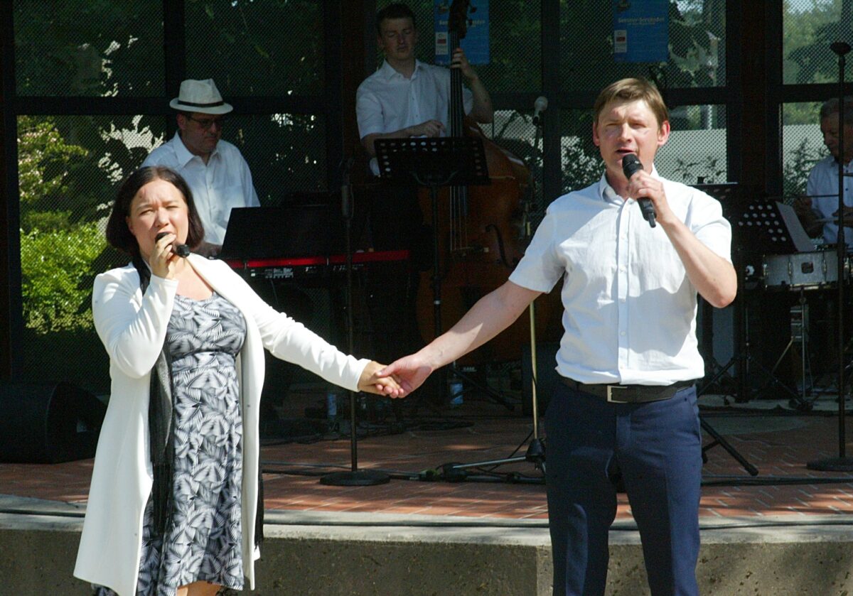 Selbst ihr Mann Christian kam bei „Fly me to the moon“ auf den sandigen Tanzboden vor dem Pavillon und unterstützte seine Frau mit der Tenorstimme. Zwei Stücke von Leonard Bernstein bis zum abschließenden „Ich gehör nur mir“, aus dem Sissi-Musical „Elisabeth“ beendete den abwechslungsreichen, beschwingten und unterhaltsamen Sommernachmittag.