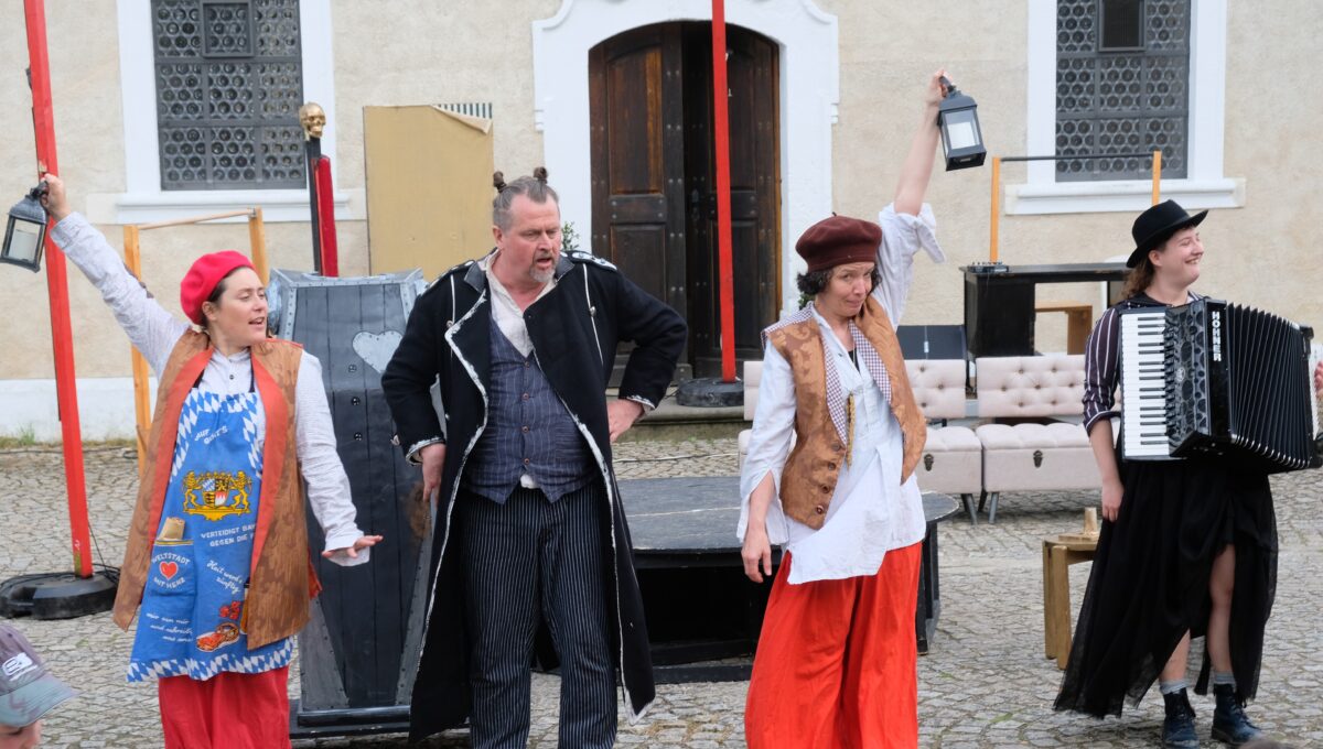 „Sein oder Nichtsein“ – diese berühmte Frage stellte sich dem „handverlesenen“ Publikum am Samstagabend an gleicher Stelle. Dem Schauspielklassiker des englischen Dramatikers William Shakespeare und das wohl bedeutendste Schauspiel aller Zeiten, ging nach der Begrüßung durch Bürgermeister Albert Nickl im Namen der ILE-Kommunen im Vierstädtedreieck eine kurze Einstimmung voraus, in der die Schauspieltruppe Parallelen zur Handlung vor 300 Jahren und den heutigen Ereignissen zog. Mit gleichen Schlussfolgerungen, mit Geschichten einer dramatischen Zeitenwende, die den aktuellen Verhältnissen auf gespenstische Weise zu ähneln scheint.