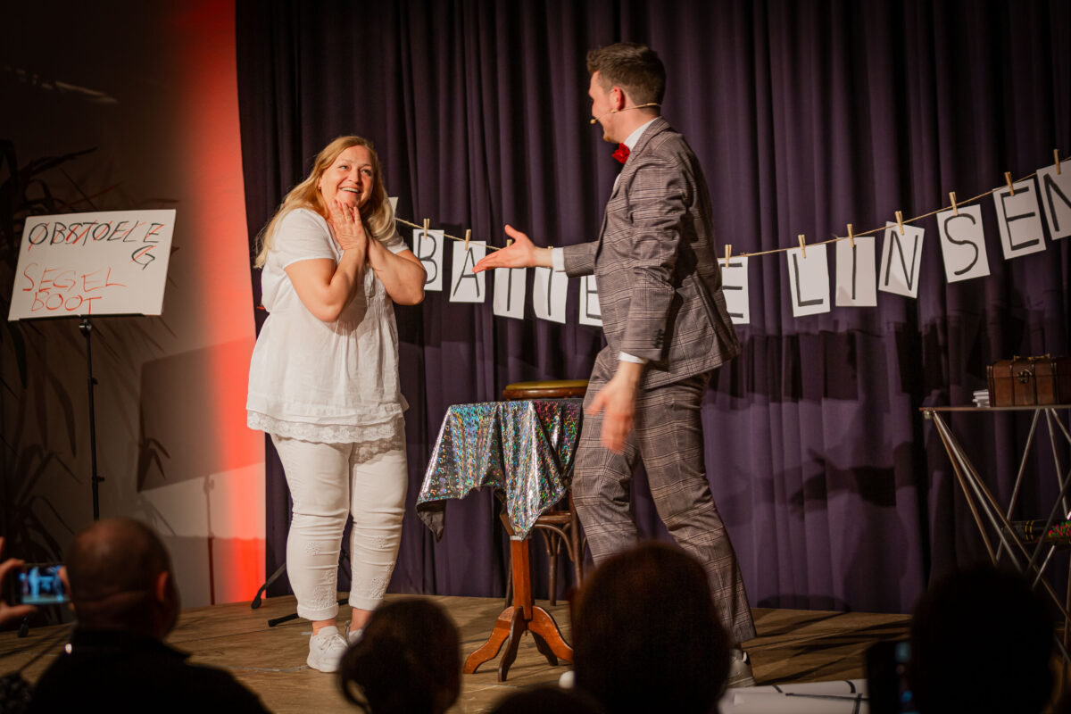 Besonders hervorzuheben ist die kreative Gestaltung der Show, die weit über das traditionelle Zauberrepertoire hinausging. Die Einbindung des Publikums, sei es durch die Teilnahme auf der Bühne oder durch interaktive Elemente, bei denen jeder Zuschauer mitraten konnte, sorgte für ein inklusives Erlebnis. Diese Strategie verstärkte das Gefühl der Wunder, die Koslowski auf der Bühne vollbrachte, und ließ die Show zu einem gemeinsamen Erlebnis werden, an dem alle teil hatten.