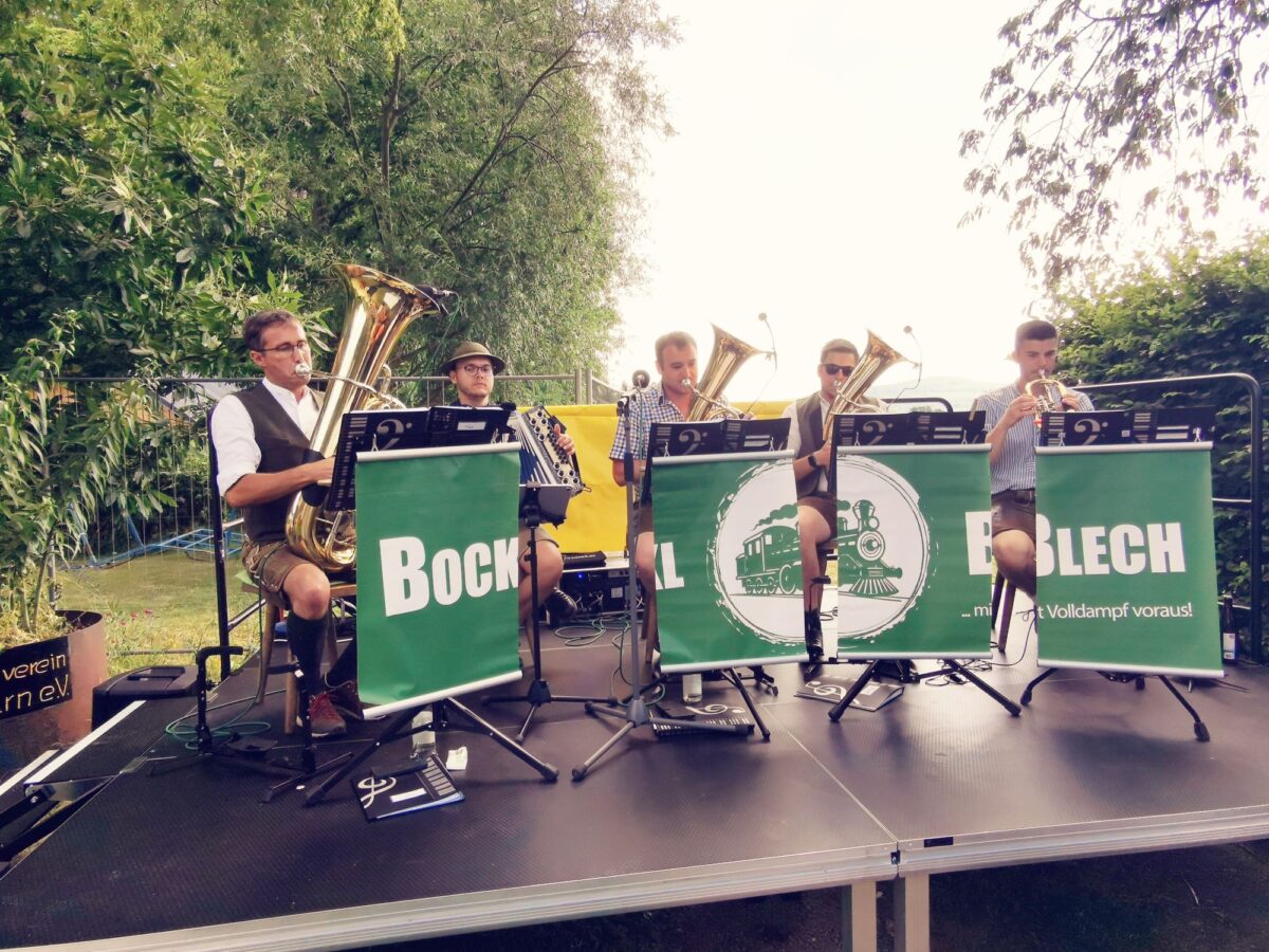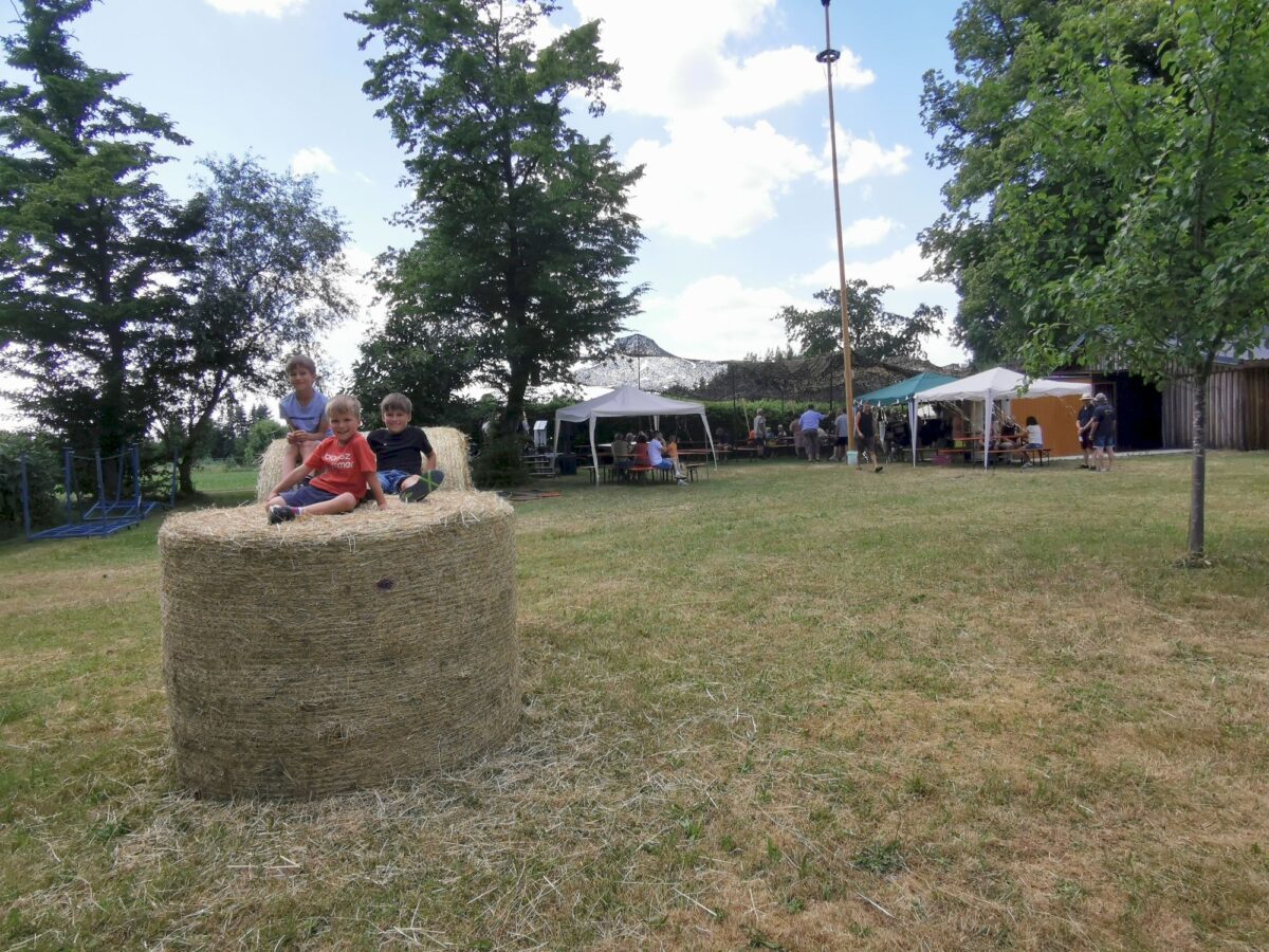 Während es sich die Eltern an den Bierbänken gemütlich machten, belagerte der Nachwuchs die bereitgestellten Heuballen und es durfte nach Herzenslust gerutscht, gesprungen und umhergetobt werden. Am Stand von Manuela Witt gab es verschiedene Bienen-Produkte und auf der Bühne boten die Musiker Thomas, Jonas, Tobi, Lucke und Philipp von „Bockl Blech“ mit einem vielfältigen Repertoire beste Unterhaltung.