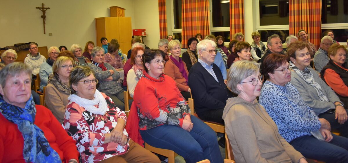 Kaplan Raveendra freute sich, dass so viele Interessierte zu seinem Vortrag über Indien ins Jugendheim kamen. Bis vor zwei Monaten war China das bevölkerungsreichste Land, jetzt ist es Indien mit rund 1,40 Milliarden. Im Gegensatz zu Europa und Deutschland ist Indien eine ganz andere Welt mit vielen Sprachen und Kulturen. Die größte Religionsgruppe ist mit 80,5 Prozent der Hinduismus. Der Anteil des Christentums liegt bei 2,3 Prozent. Dies entspricht zahlenmäßig so viel wie in Deutschland. Das wichtigste Nahrungsmittel in Indien ist der Reis.
