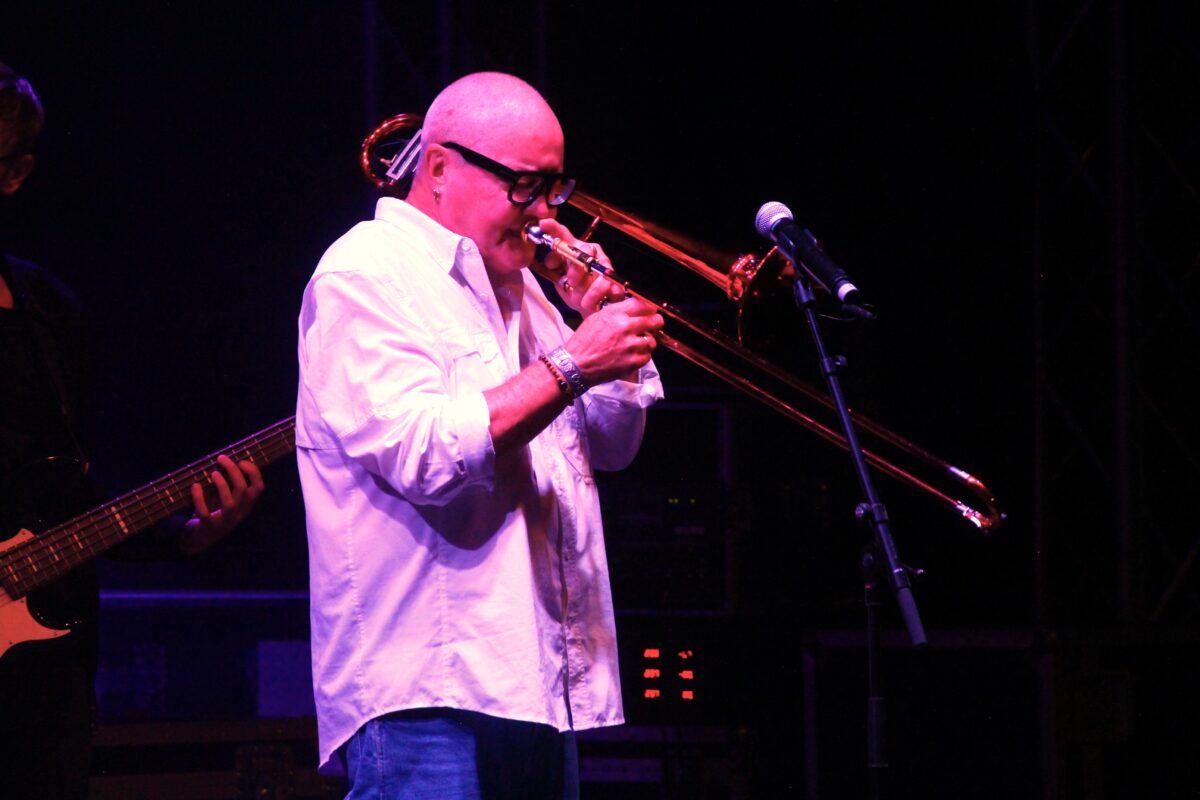 Und dafür hatte er genau die richtigen Bühnenpartner an seiner Seite: Zum einen Simon Oslender, der an den Keyboards glänzte, und zum anderen Thomas Stieger, der am Bass eine grandiose Leistung ablieferte. „Zurückgekehrt“ nach Wunsiedel war nach den fulminanten Auftritten in den vergangenen Jahren auch Jazz-Weltstar Nils Landgren: Gewohnt agil, frisch und quirlig spielte der Schwede an diesem Abend die Posaune. „Mr. Red Horn“, wie er wegen seines roten Instruments auch genannt wird, veredelte aber nicht nur Melodien, sondern begeisterte auch als Sänger bei verschiedenen Songs – sowohl als Solist wie auch im Duett.