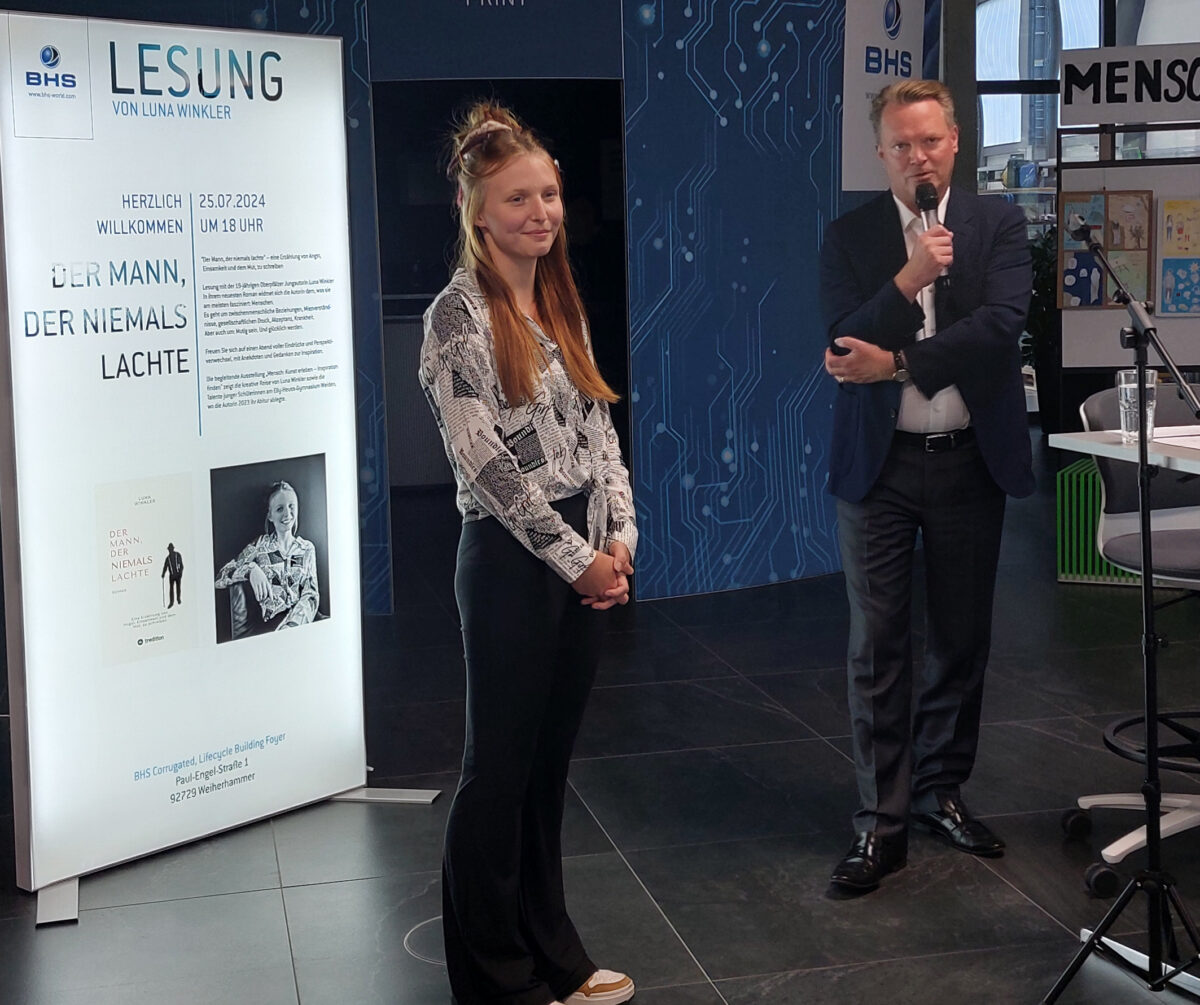Hausherr Lars Engel begrüßte in seinem für derartige Veranstaltungen geradezu prädestinierten Lifecycle Building über 70 Gäste. Von der neuen Doppelspitze der Regionalbibliothek Weiden war Ruth Neumann gekommen, die mit Katja Sauermann bereits viele Jahre die Entwicklung der Regionalbibliothek mit begleitet hat, der Weiherhammerer Autor des Buches „Wellengang“ Ottmar Braun war anwesend, Ramona Gilch vom Lehrerkollegium des Elly-Heuss-Gymnasiums, die mit Luna Winkler passende Exponate für eine Ausstellung ausgesucht hatte und für die Stadt Weiden ließ es sich Dr. Matthias Loew nicht nehmen, bei dieser Erstlesung des neuen Buches der Jungautorin dabei zu sein.