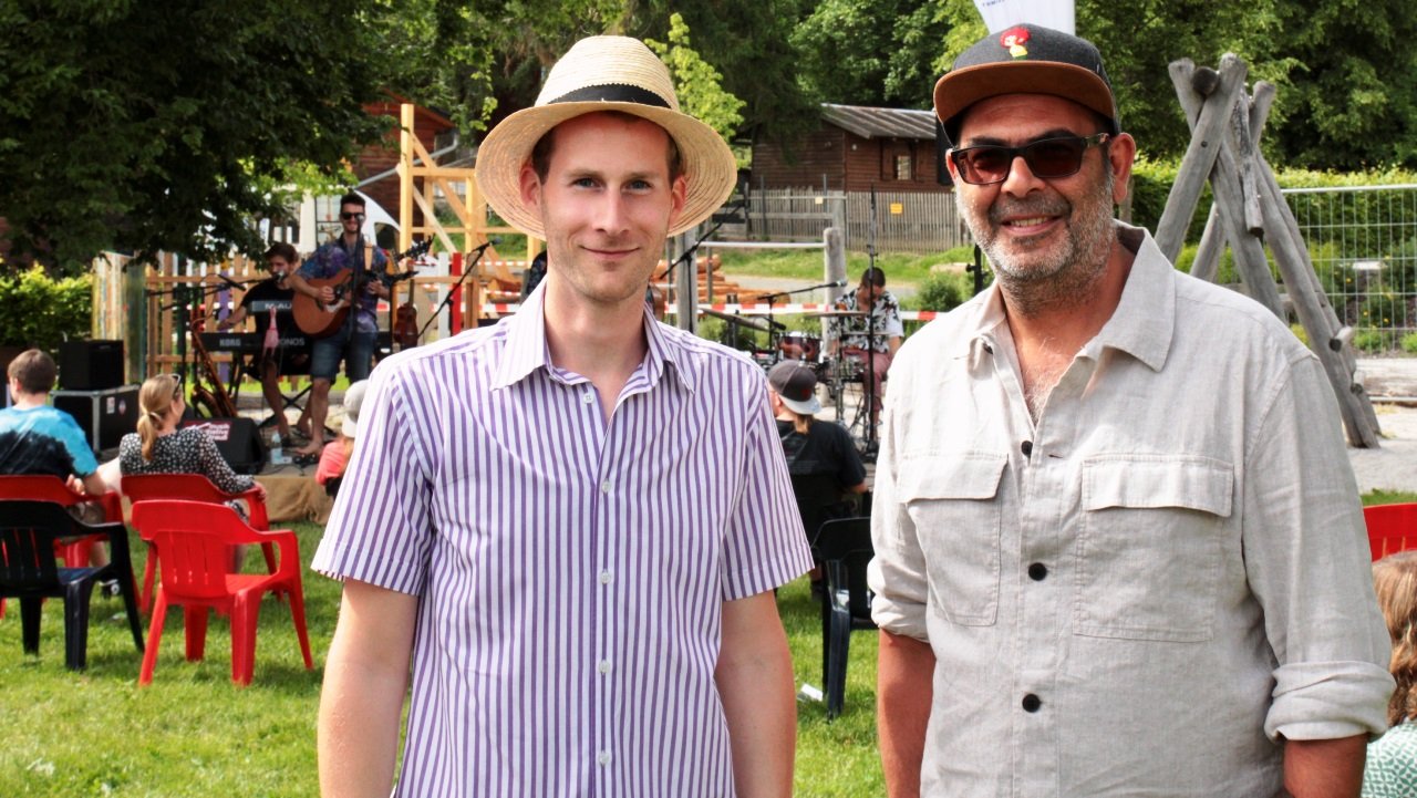 Hannes Ringlstetter besuchte die jungen Musiker seiner Vorbands vor seinem Auftritt auf der Hauptbühne und machte sich im Gespräch mit seinem Namensvetter, dem MiVoh-Hannes (Gilch), ein Bild davon, wie die Musikinitiative die Kulturlandschaft in der Region zu pushen versucht.