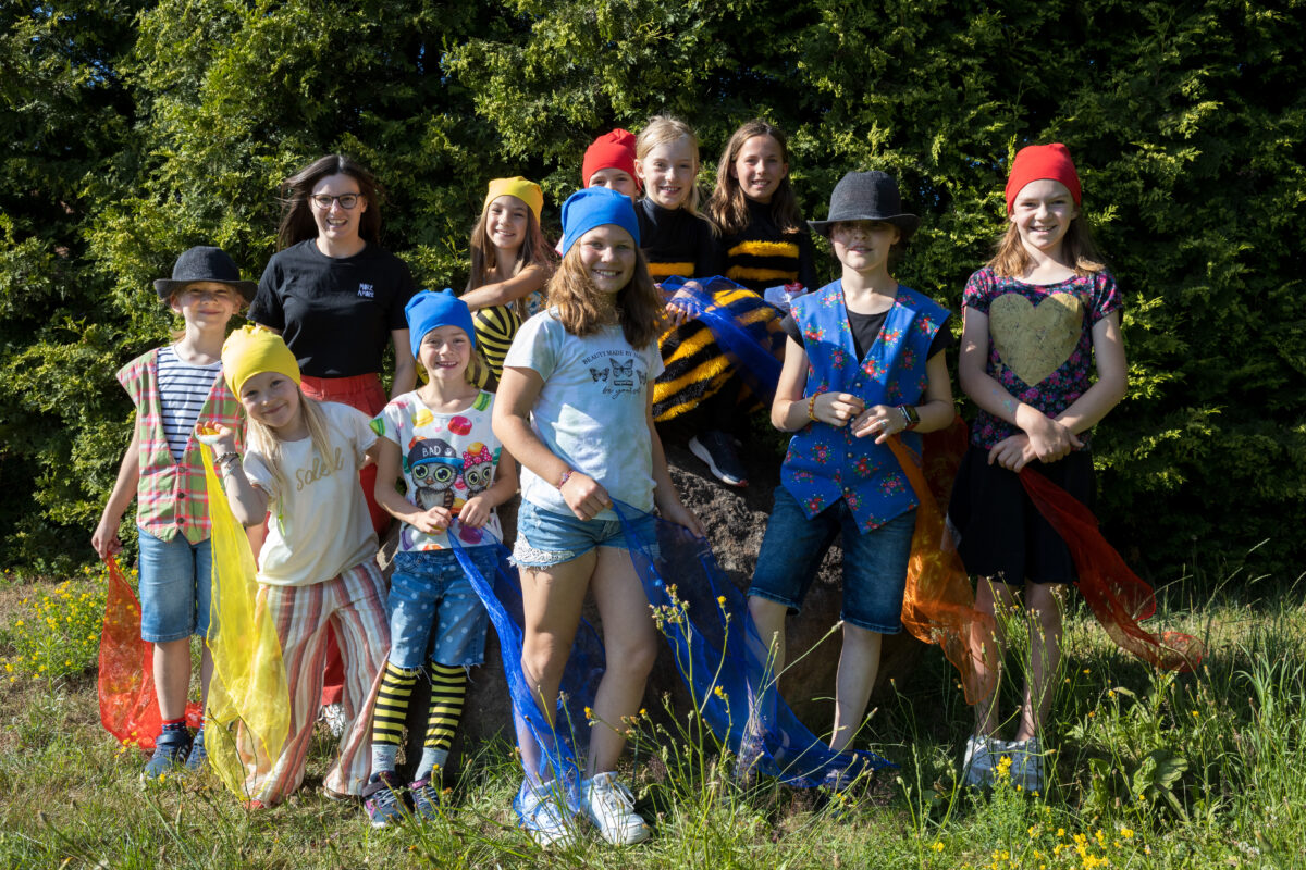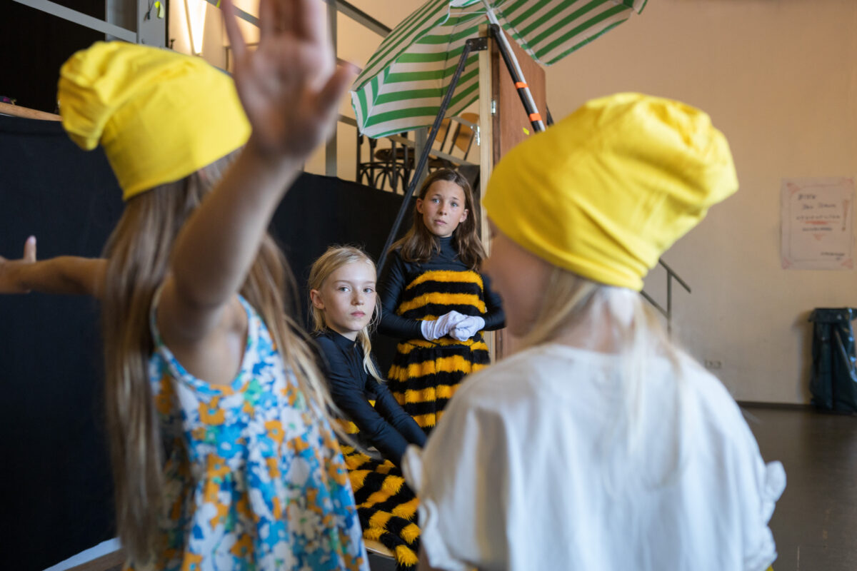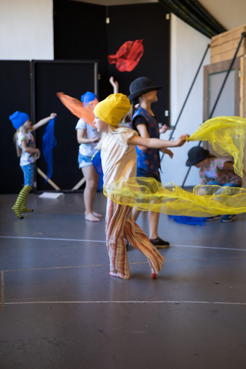 Nachdem den Kindern in den ersten Wochen der gemeinsamen Proben die Grundlagen des Schauspiels vermittelt wurden, begann vor zwei Monaten die Entwicklung ihrer ersten eigenen Produktion „Frühling im Lande Kunterbunt“. Seitdem arbeiten die zehn Kinder im Alter zwischen sechs und elf Jahren mit Leidenschaft an ihrem Stück.
