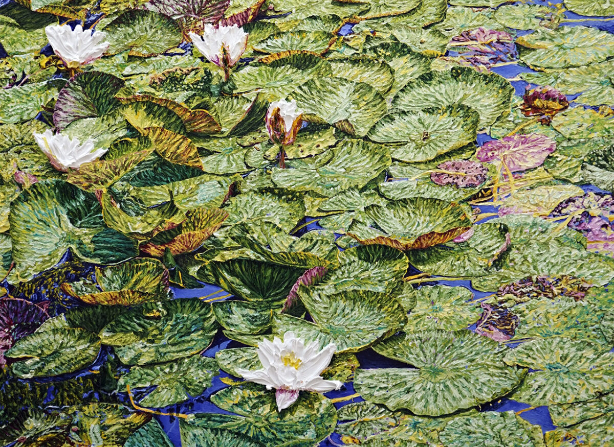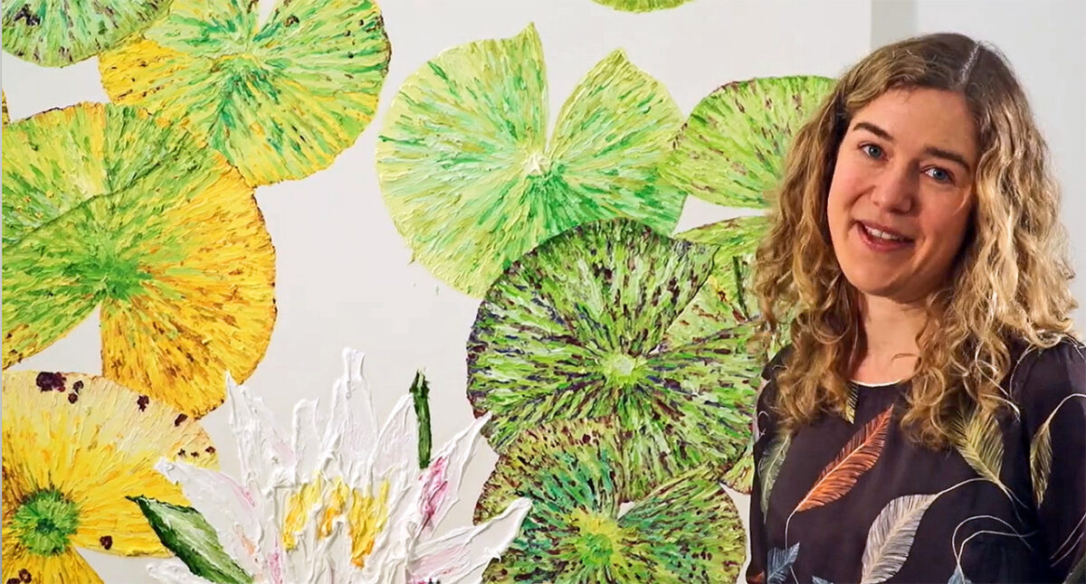 Ob Claude Monets Seerosen die junge Malerin inspiriert haben oder sie aus Liebe zu den faszinierenden Wasserpflanzen den französischen Impressionisten entdeckt hat, ist zweitrangig. „Wenn man heutzutage Seerosen malt, dann ist es unvermeidbar, dass alle gleich an Monet denken“, gibt sie zu. „Ich selbst bin auch ein großer Fan von Monets Nympheas und habe sie mehrfach in verschiedenen Museen betrachtet.“ Für Gierlach ist jedoch kein Sujet jemals beendet oder gar vollendet. „Für mich ist es wichtig, das Thema mit pastoser Ölfarbe zu bearbeiten.“