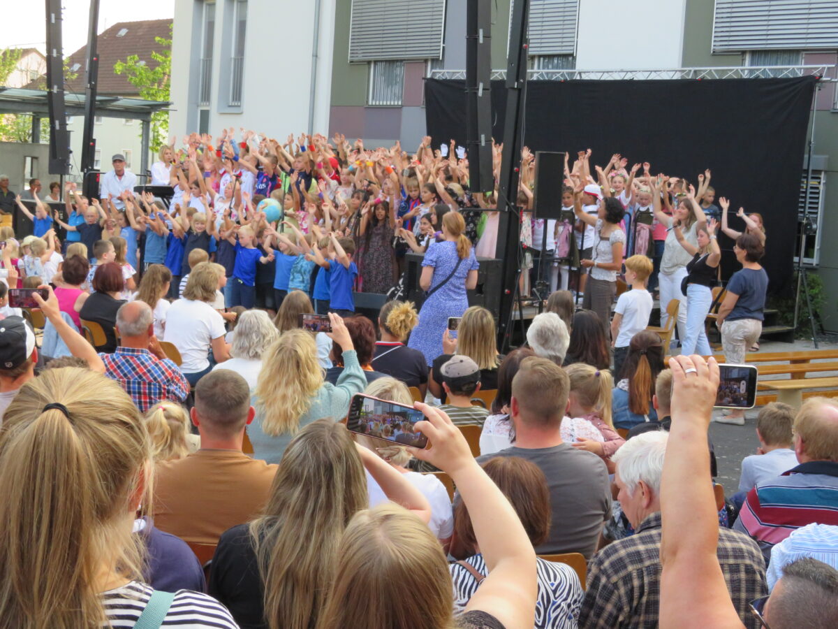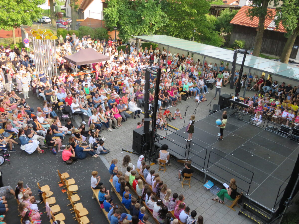 Die über 800 Besucher belohnten die Kinder mit tosendem Applaus für ihre Darbietungen. Der Elternbeirat sorgte mit Getränken und Speisen für das leibliche Wohl. Bürgermeister Ernst Schicketanz zeigte sich begeistert und danke den Kindern für ihre tolle Aufführung.