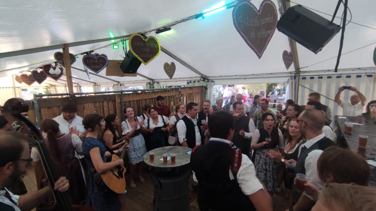 „Das Zelt steht, eingerichtet ist auch alles, jetzt fehlen nur noch die Besucher“, sagt uns Vorsitzender Max Sternkopf zuversichtlich. Auch das Wetter kann den Veranstaltern keinen Strich durch die Rechnung machen, erklärt uns Kirwamoidl Mareike mit einem Augenzwinkern, „da heizen wir schon richtig ein“.