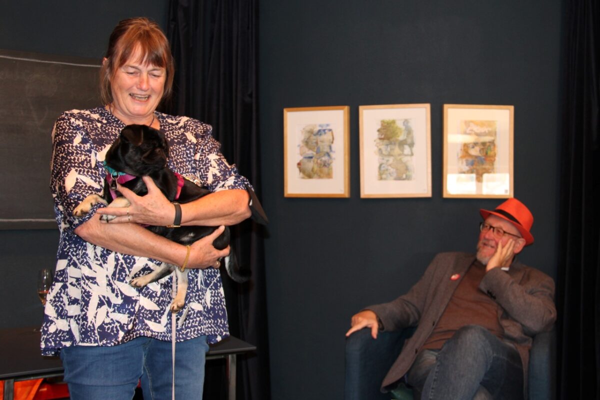 Künstlerkollege Bernhard Dagner machte sich daher in seiner humorvollen und lockeren Laudatio auch einen Spruch von Vicco von Bülow alias Loriot zu Eigen. „Ein Leben ohne Mops ist lebenswert, aber nicht sinnvoll“. Ein Leben ohne Mops und ein Bild von Susanne Vonhoff sei daher zwar lebenswert, aber nicht sinnvoll. Er forderte die Besucher dazu auf, in den ausgestellten Bildern auf Entdeckungsreise zu gehen, denn in den Werken stecke Vieles.