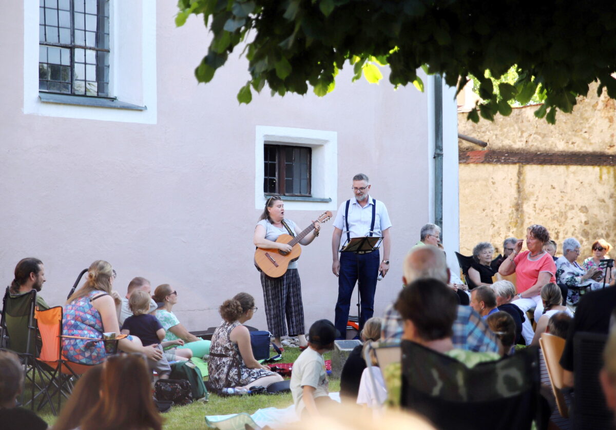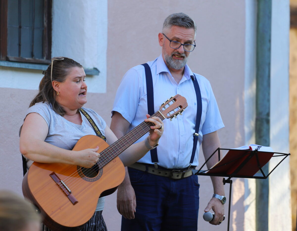 Das Duo Vivian & Marcio brachte mit Liedern wie „Em paz“ und „Cancao do cuido“ brasilianisches Flair nach Kohlberg. Das Gesangsduett, bestehend aus dem evangelischen Pfarrer Márcio Trentini und seiner Ehefrau Vivian, die die Gitarre spielte, entführte die Besucherinnen und Besucher musikalisch nach Brasilien. In seiner Ansprache wies Pfarrer Trentini auch auf zukünftige Veranstaltungen, wie die Fahrrad-Aktion am 28. Juni und die folgenden mit dem Namen „Kirchturm zu Kirchturm“, hin und betonte den Bedarf an finanziellen Mitteln für die Sanierung der Nikolauskirche, bedingt durch den Titel „Simultankirche des Jahres“.