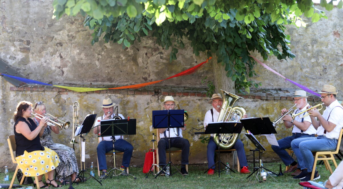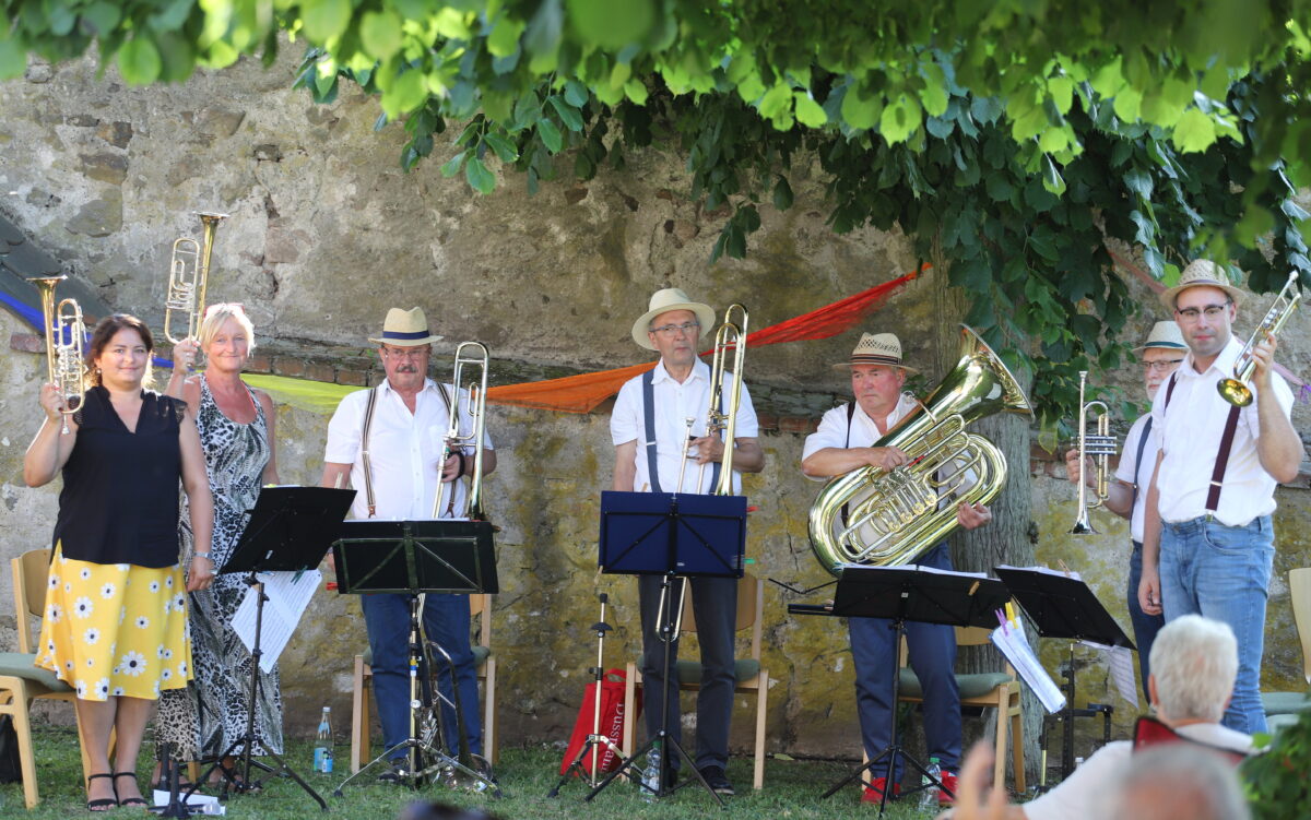 Die musikalische Gruppe „Bayrisch Kellerblech“, bestehend aus Vollblutmusikern und -musikerinnen aus regionalen Posaunenchores, unter der Moderation von Ulrike Kummer, sorgte für ein abwechslungsreiches Programm. Nummern wie „Mister Sandmann“, „Summertime“ oder „A walk in Summer“, „Peachering Rag“, „Kangaroo-Boogie“ bis hin zum zackigen und mitklatschfähigen „Radetzky-Marsch“ offerierten die Vielseitigkeit der erfahrenen Blasmusiker. Jedes Stück wurde mit interessanten Informationen eingeleitet, was das Programm nicht nur musikalisch reichhaltig, sondern auch informativ gestaltete.