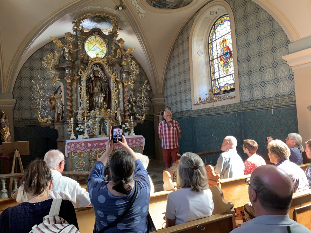 Am frühen Nachmittag begaben sich die zahlreichen Interessierten im Rahmen einer Führung mit dem bekannten Heimatforscher Adalbert Busl, selbst ein gebürtiger Beidler, auf eine Zeitreise durch die Geschichte des Dorfes und der Pfarrei. Angefangen am Sulzteich mit dem sagenumwobenen Granitfelsen mit Kreuzigungsszene, über die ehemaligen Gaststätten in Beidl, bis hin zur rätselhaften Leonardikapelle.