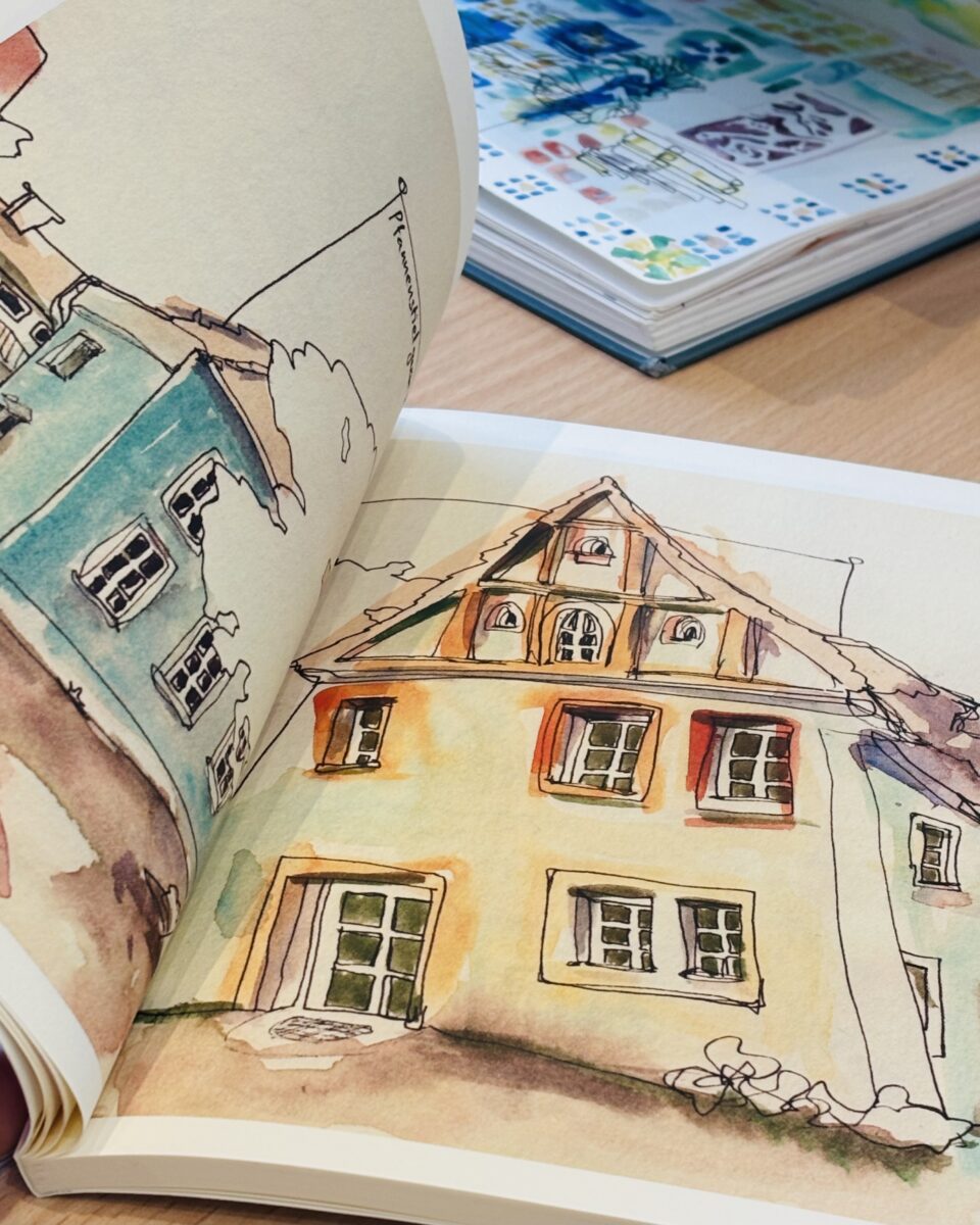 Künstlerin Coline Eberhard verewigt Weiden im Reiseskizzenbuch