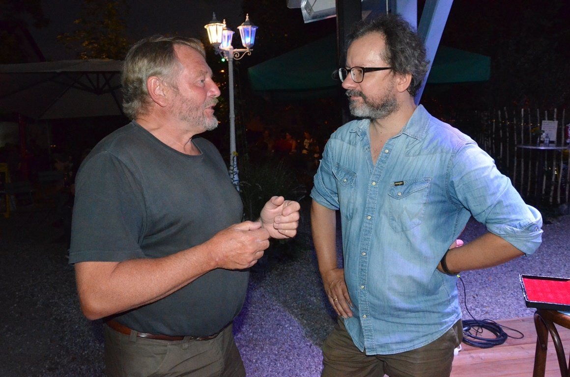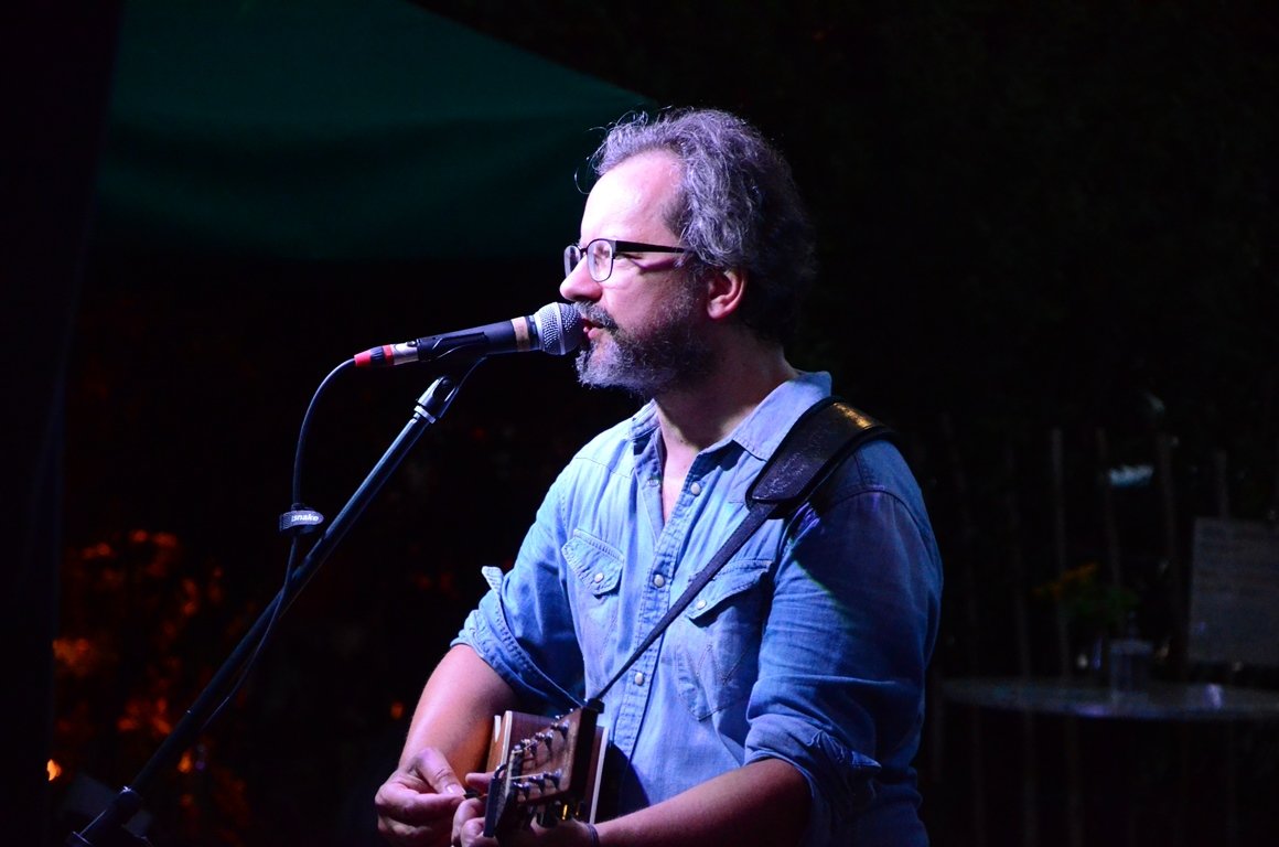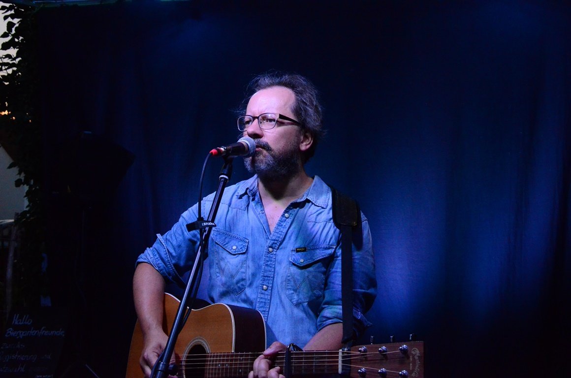„Trailhead“ nennt sich der Folk-Sänger, der sich, seit er in den USA zu Fuß unterwegs war und die “Trailhead”-Schilder an den Starpunkten der Wanderwege sah. Im Biergarten sang Panwitz von seinen Reiseerlebnissen und von den interessanten Begegnungen am Wegesrand. Mit Gitarre, Mundharmonika oder Ukulele erzählte er in englischer Sprache alles, was ihm auf nord- und südamerikanischen Landstraßen, lettischen Flüssen oder auf dem Jakobsweg passierte.
