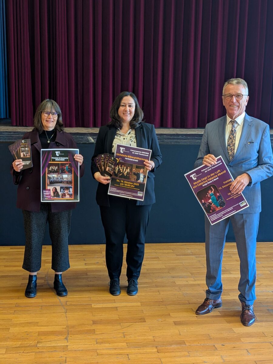 Meisterhaft, elegant, feurig und atemberaubend. So kann man das Kulturprogramm der Stadt Tirschenreuth für die Saison 2025/26 kurz zusammenfassen. An vier Abenden wird im Kultur- und Veranstaltungszentrum Kettelerhaus wieder ein hochkarätiges Konzert- und Theaterangebot präsentiert, das Bürgermeister Franz Stahl im Rahmen eines Pressetermins nun gemeinsam mit der Leiterin Tourist-Information/MQ Birgit Plößner sowie Tourist-Info-Mitarbeiterin Petra Römer vorgestellt hat. Das Programm startet am 19. Oktober um 18 Uhr mit einem Konzert des Bläserensembles der Bläserphilharmonie Leipzig – und endet am 15. März mit dem Psychothriller-Schauspiel „Black Mountain“.