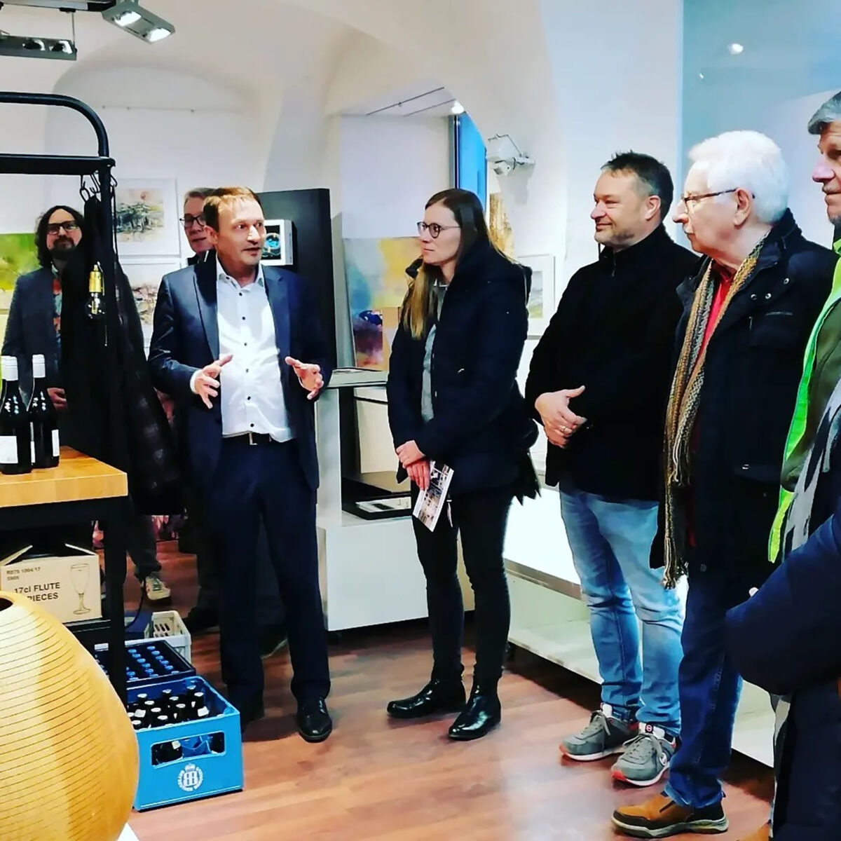 Bereits zum siebten Mal organisiert der Oberpfälzer Kunstverein seine Pop-Up-Galerie in der Weidener Altstadt. Anfangs fanden die zeitlich begrenzten Ausstellungen in Leerständen statt. Seit vier Jahren gibt es nun die Zusammenarbeit mit Tobias Sonna – eine klassische Win-Win-Situation, bestätigen Verein und Einzelhändler. Das Kunstkaufhaus erweitert das Spektrum des Angebots, lockt neugierige Besucher in die Ladenräume, die Künstlerinnen und Künstler profitieren von den regelmäßigen Öffnungszeiten, den Räumlichkeiten und der Kaufatmosphäre, die Kunst insgesamt findet durch die leichte Zugänglichkeit neue Interessierte.