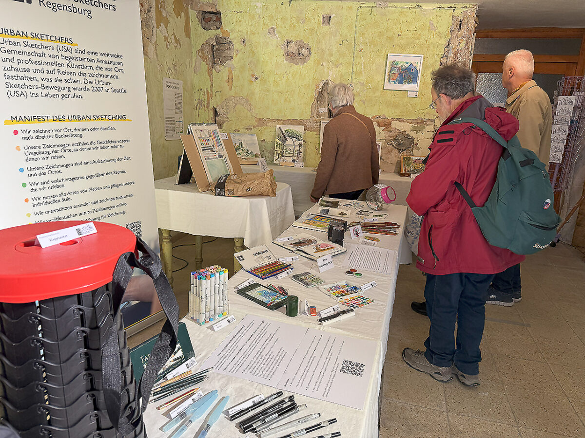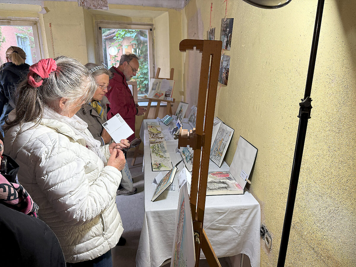 Zwischen den Ateliers lud man zum Verweilen an Ständen lokaler Caterer und Vereine, während Gästeführer wie Charly Söllner und Bruno Gallhuber die historischen Winkel Kallmünz’ mit launigen Anekdoten und kulturellen Kostbarkeiten beleuchteten.
