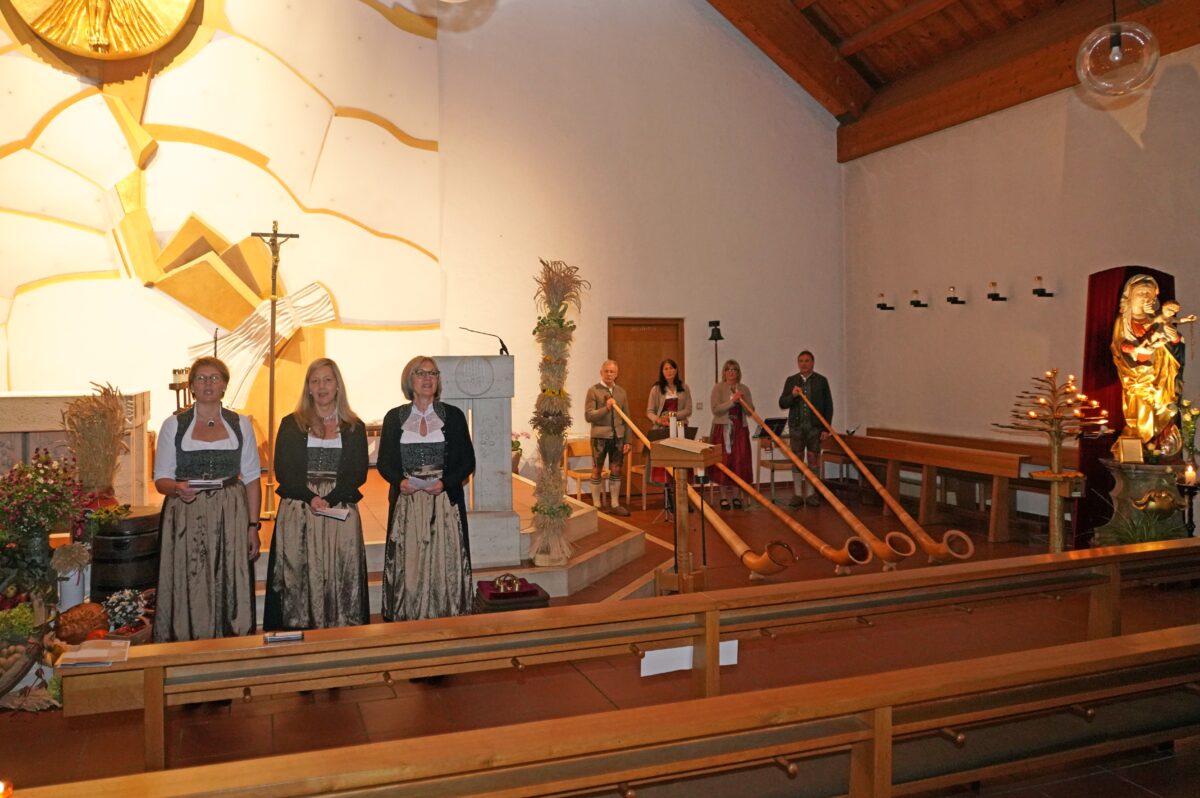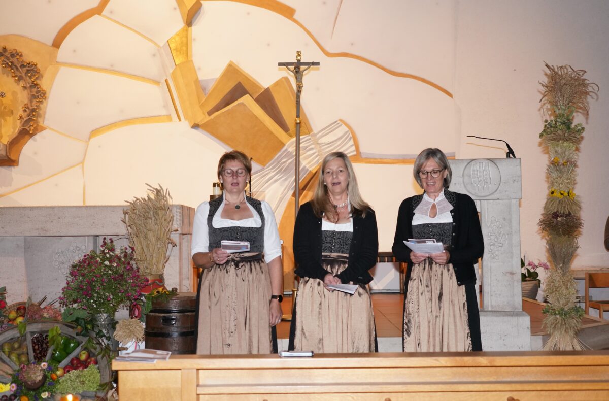 „Segne Du Maria“, „Vergiss mich nicht“ oder auch „Reinste Jungfrau“ waren einige Intonationen, bei denen Georg Schmidbauer das Gesangstrio begleitete. „Nimm Dir Zeit“ sangen die drei Stimmen und Bernhard Schmidhuber begleitet an der Orgel. Eine Besonderheit war die Aufforderung der Sängerinnen beim „Schau auf`s Guade im Leben“ das Schmidhuber am Akkordeon begleitete.