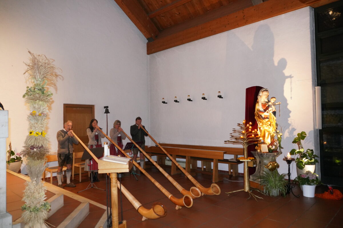 Eine Stunde zu Ehren Mariens mit unterschiedlichsten Marienliedern mit den drei Waldthurner Sängerinnen Andrea Götz (Sopran), Steffi Daubenmerkl (Mezzosopran) und Doris Völkl (Alt). Imposant waren auch die Schellenberger Alphornbläser mit Maria und Bernhard Träger aus Waldkirch, Inge Hirschleb aus Michldorf und Christian Albrecht vom Fiedlbühl, die mit ihren vier Alphörnern ihre bemerkenswert reine Töne in das Areal des großen Gotteshauses schickten.