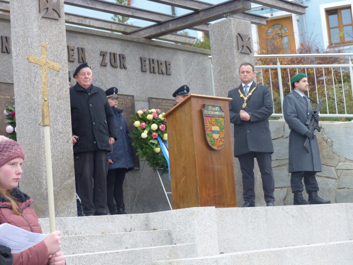 In Leuchtenberg fand eine bewegende Gedenkfeier zum Volkstrauertag statt. Erstmals wurde diese am frisch restaurierten Platz beim Kriegerdenkmal abgehalten. Bürgermeister Anton Kappl drückte seine Freude darüber aus, dass die Sanierungsarbeiten abgeschlossen sind. Er betonte in seiner Ansprache den Wert des Friedens, der in der heutigen Zeit wichtiger sei denn je. Kappl appellierte: “Jeder muss bei sich anfangen.” Zudem hob er die Bedeutung des Volkstrauertags hervor, “ein Tag, an dem wir innehalten, um der Opfer der Kriege, der Gewalt und des Leids gedenken, das so viele Menschen erfuhren und noch immer erfahren müssen.”