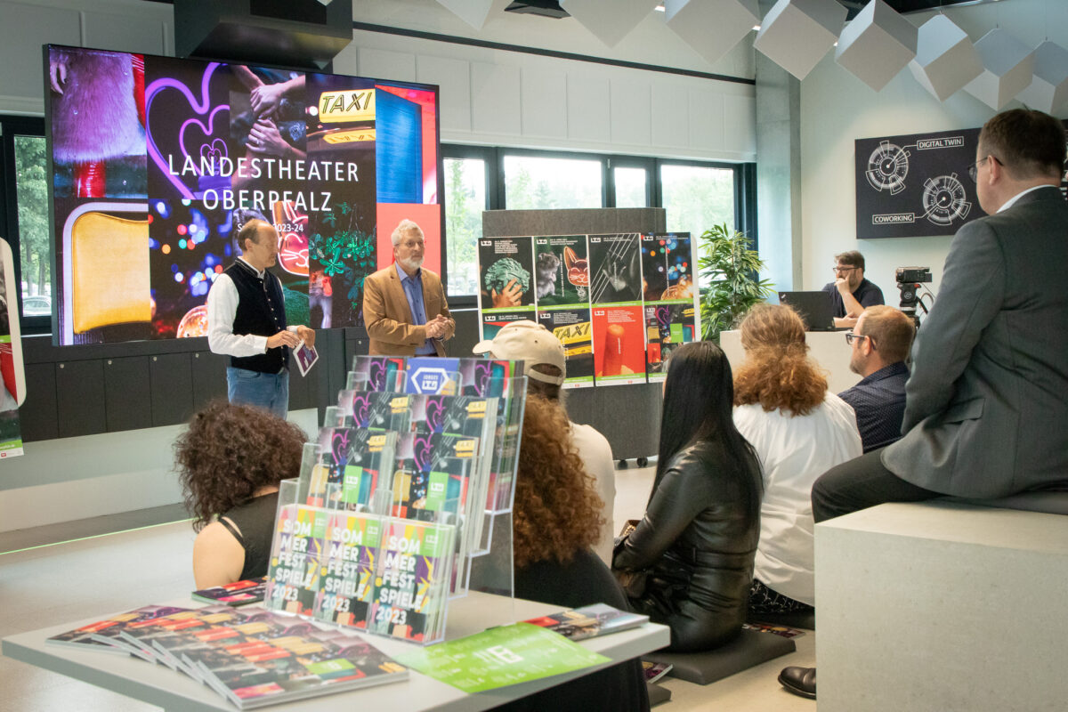 Der Sommer ist traditionell die Zeit, in der die Theater ihre neuen Spielpläne vorstellen – so natürlich auch das Landestheater Oberpfalz. Im Future Lab des Überbetrieblichen Bildungszentrums in Ostbayern (ÜBZO) in Weiherhammer stellten Geschäftsführer Wolfgang Meidenbauer und der künstlerische Leiter Christian A. Schnell das erste unter Schnells Ägide entstandene Jahresprogramm des LTO vor – und das hat es in sich.