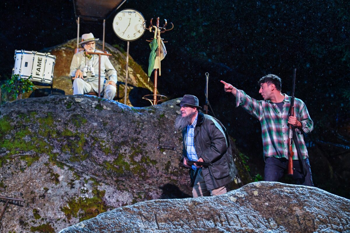 „Watzmann, Watzmann, Schicksalsberg, du bist so groß und i nur a Zwerg“, heißt es in einem Lied aus dem sogenannten „Rustical“ von Wolfgang Ambros, Manfred O. Tauchen und Josef Prokopetz. Zumindest aufführungstechnisch lässt sich dieses Szenario auch problemlos aus dem Berchtesgadener Land ins Fichtelgebirge verlegen. Vom ersten Moment an wird deutlich, dass die „Macher“ des Stückes einen unschlagbaren Partner an ihrer Seite haben – und diesen intelligent einsetzen: die Bühne und die Kulisse, die sich im Felsen auftun. Bereits die Ouvertüre zieht die Besucher tief hinein in die Schicksalswelt rund um den Watzmann. Und wenn der Berg sein „Hollaröhdulliöh“ ruft, dann wird jedem klar, dass Unheil in der Luft liegt und der Watzmann respektive das Fichtelgebirge ein neues Opfer sucht.