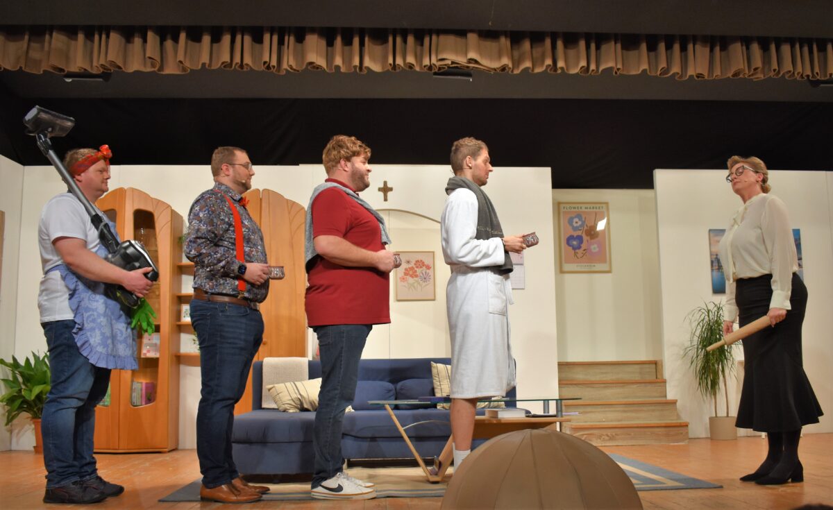 Wolfgang Bräutigam, der Vorstand der Katholischen Theatergruppe hat zu deren 40. Jubiläum das Stück: “Happy Birthday Kate” geschrieben. Insgesamt kamen 1320 Zuschauer bei vier Aufführungen ins Jugendheim, um “mitzufeiern”.