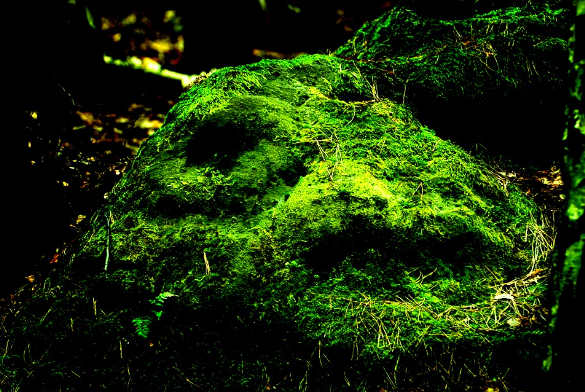Eines Tages traf er auf einen schon alt aussehenden, aber tatsächlich keineswegs alten Mann. Der Kerl mit vielen Gesichtsfurchen war hoch aufgeschossen wie die Bäume um ihn herum und sein Gesicht braun gegerbt, wie Leder. Scheinbar lebte er genau hier oben in den wild wuchernden Wäldern. Tiptop sah er nicht aus. Und: Noch nie hat man von ihm gehört. Niemand hatte je von ihm erzählt. Sein grünes Haar war vielleicht gefärbt mit Moosextrakt, jedenfalls konnte es kaum natürliche Haarfarbe sein, dachte der Junge.