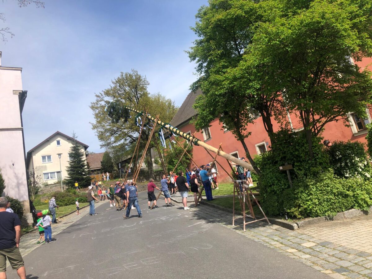 Zum dritten Mal in Folge wurde der Baum am 1. Mai nachmittags aufgestellt. Viele Helfer waren angetreten, um den Maibaum nur mit Hilfe von “Schwalben”, ohne Maschineneinsatz, in die Höhe zu stemmen. Den Baum hat die Gemeinde gestiftet, für den Schmuck ist traditionell der Waldverein zuständig. Viele Zuschauer aus Püchersreuth, Ilsenbach und Umgebung kamen, um das Aufstellen mitzuverfolgen.