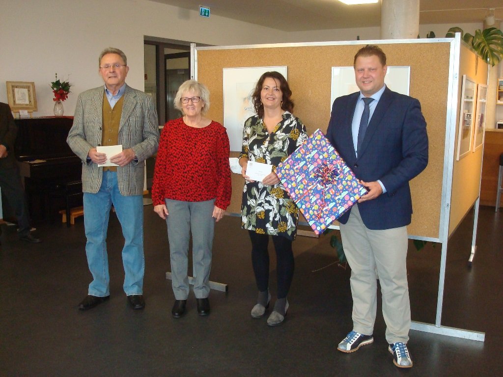 Der künstlerische Leiter des Malkreises, Hans-Günther Pietschmann, informierte, dass der Malkreis bereits seit 33 Jahren ausstelle. Bürgermeister Stefan Grillmeier dankte den Malkreis-Leiterinnen Nicole Schuller und Helga Müller mit einer Spende.
