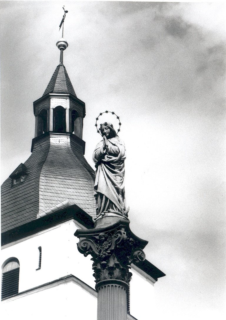 Betrachtet man die Inschrift der Säule, dann wird auch der Spender klar. Gestiftet hat sie Geistlicher Rat Andreas Schiffmann, ein gebürtiger Mitterteicher. Er war Gymnasialprofessor an der Lateinschule und Schulinspektor in Haßfurt. Von der Firma Metzger aus Haßfurt wurde sie aufgestellt und am 30. August 1896 eingeweiht. Weil der Geistliche der Stadt noch mehrere Skulpturen stiftete – unter anderem die Statue Johannes Nepomuk auf der Färberbrücke sowie das Friedhofskreuz – ernannte ihn der Magistrat des Marktes Mitterteich zum Ehrenbürger.