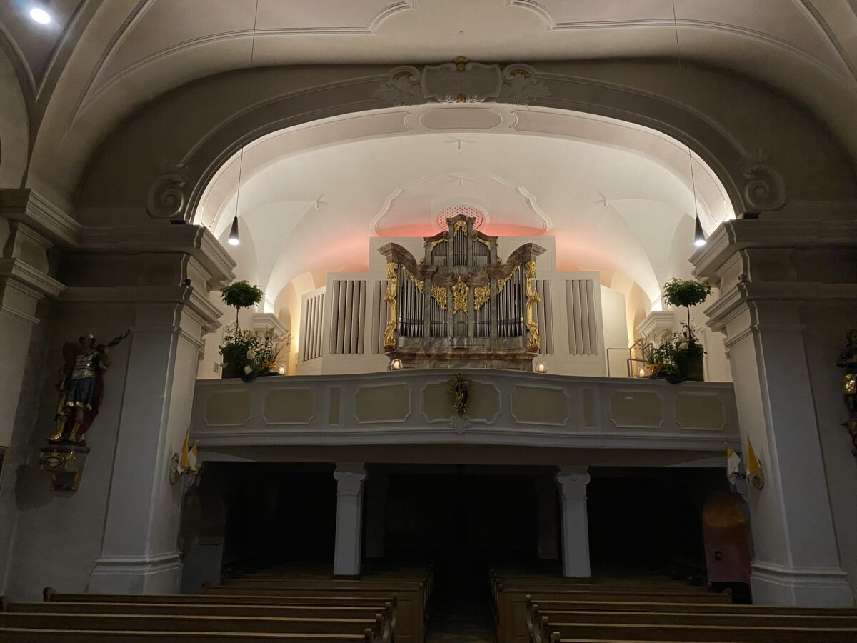 Die Konzertsaalorgel in der katholischen Pfarrkirche kann auf 110 Jahre zurückblicken, obwohl sie erst im September 2023 eingeweiht wurde. Die Erklärung dafür ist ganz einfach, denn das Instrument wurde 1916 von der Orgelbaufirma H. Voit & Söhne aus Durlach für das Kurhaus in Baden-Baden gebaut. Der Bau der Orgel fiel mitten in die Zeit des Ersten Weltkrieges, was im Orgelbaubetrieb zu erheblichen Schwierigkeiten führte. Immerhin waren von den 65 Mitarbeitern 45 eingezogen. Aufgrund des Rohstoffmangels und der Beschränkungen infolge des Krieges gab es Probleme, an Zinn für die Herstellung der Pfeifen zu gelangen.