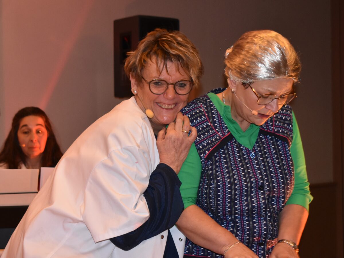 Vor dem Sterben läuft blitzartig ein Film ab vom Leben. Simon fragt: „Welchen Film wollen’s denn sehen? Drehens doch einen guten Film, dass Sie sich totlachen. Meinen letzten Film drehe ich jetzt!“ Beim Musikprogramm konnten die Besucher nicht nur einen Tango hören, sondern auch sehen. – „Dann tanz ich mit der Sensenfrau ’nen Tango“, so der Titel. Gesungen wurde auch vom bayerischen Schutzengel Aloisius: „O Lord, Zeit is kumma, i seh a Licht, wollt einfach sterben, doch so einfach geht’s wohl ned. Schließlich will auch der Pharmakonzern noch etwas verdienen. Die Themen: Fegefeuer, Testament und Trauer wurden nicht ausgespart. Es ist egal, was andere denken. Und auch, wenn die anderen nicht wissen, was sie sagen sollen. Dann sollen sie einfach nichts sagen und beim Trauernden bleiben.