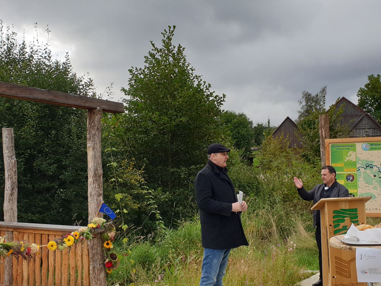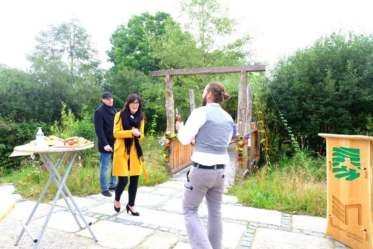 Knapp 30 Besucher nahmen an der Feier im Außenbereich des Geschichtsparks Bärnau-Tachov teil. Zusammen mit dem Projektpartner Revis in Tachov startete der Verein Via Carolina – Goldene Straße e.V. im Frühjahr 2020 das Projekt „Wir lernen das Grüne Band kennen“, gefördert durch die Europäische Union im Programm ETZ Ziel 3.