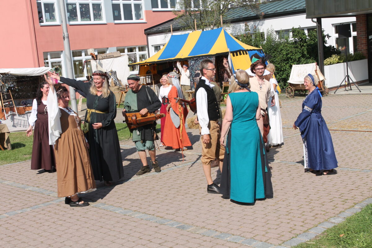 Traumwetter herrscht bereits, als die Feierlichkeiten mit dem von Pfarrer Adam Karolczak in der Pfarrkirche St. Emmeram von der „Choralschola“ Weiden musikalisch und gesanglich gestalteten Festgottesdienst beginnen. Eine Augenweide ist der traditionelle Zug der vielen Gewandeten mit den „Amici Musicae Antiquae“ zur Hauptbühne. Die Gruppe unterhält die Gäste wiederholt bestens mit Liedern aus der „guten alten Zeit“.