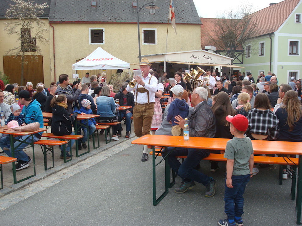 Mit dem Lied „Der Mai ist gekommen, die Bäume schlagen aus…“ eröffnete die Stadtkapelle Mitterteich unter Leitung von Oliver Lipfert die Maibaumfeier am Vorabend des Ersten Mai im Stadtteil Anger. Zahlreiche Besucher freuten sich, dass nach der langen Corona-Quarantäne endlich wieder ohne Beschränkungen gefeiert werden konnte.