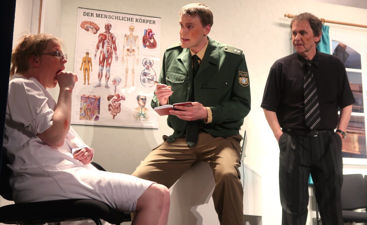 Es dominieren Stefan Neubauer (Dr. Gruber), Maximilian Hegner (Dr. König) und Andreas Magulski (Dr. Becker) das Gag-Fest und ziehen alle Register ihres komödiantischen Könnens. Toll an ihrer Seite: Nenja Bauer als Doktoren-Gattin Rosi, Michael Dineiger als Polizist, Marion Helgert als Oberschwester oder Elisabeth Lang als Tochter Kelly und Franziska Birkner als deren Mutter. Eine herausragende Rolle spielt Heiner Balk als leicht debiler, aber pfiffiger Patient, der im Rollstuhl die Bühne beherrscht.