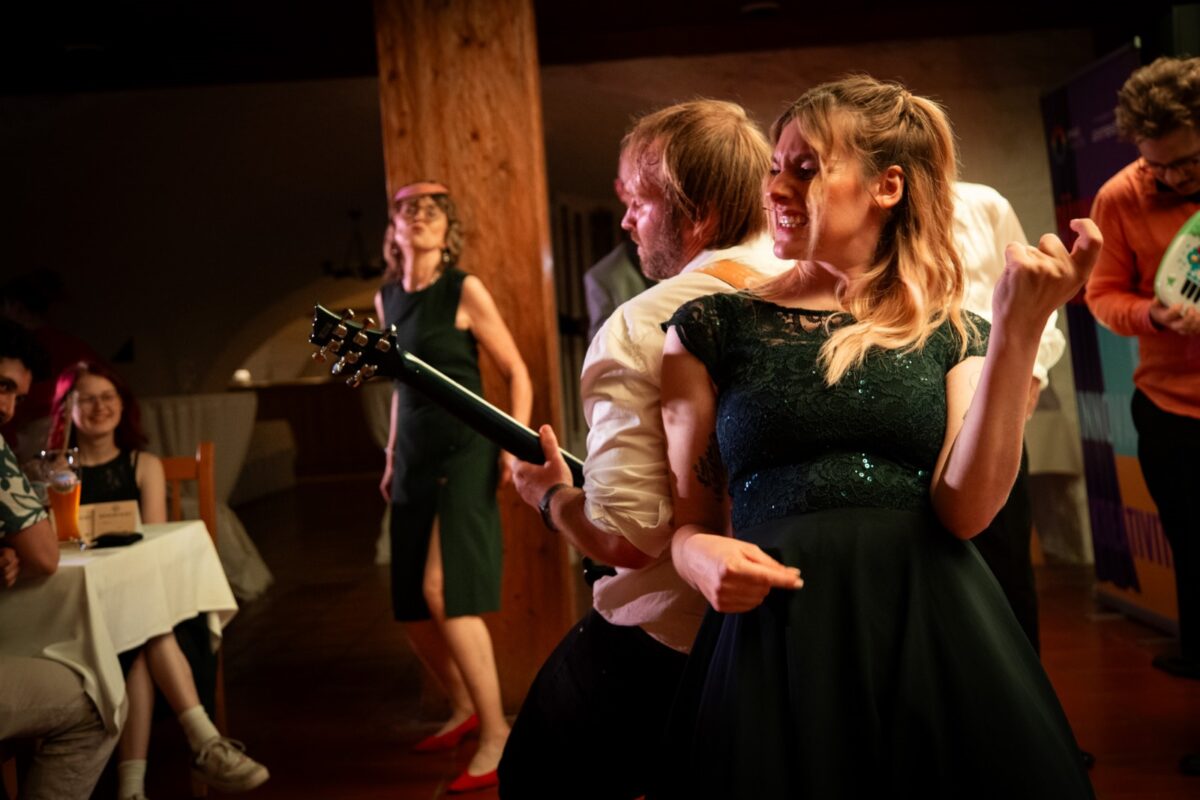 Zum Glück sitzt die OVIGO-Live-Band bereits unter den Gästen. Die frisch gecastete Band muss innerhalb von drei Stunden zusammen harmonieren und ein flottes musikalisches Hochzeitsprogramm auf die Bühne bringen. Inklusive Klassiker wie „(I’ve Had) The Time of My Life“, „Everybody Needs Somebody“, „Can You Feel The Love Tonight“, „The Winner Takes It All“ oder „I Was Made for Lovin‘ You“. Auch das Publikum soll helfen: Es entscheidet zum Beispiel, ob ein bekanntes Liebeslied vielleicht in einer Rock- oder Reggae-Version gespielt wird. Und während sich die Gäste das Menü schmecken lassen, rückt die Stunde der Wahrheit für die improvisierte Hochzeitsband immer näher. Die Braut ist im Anmarsch.