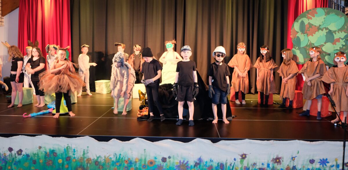 Fast 200 Besucher, unter ihnen viele Eltern, Omas und Opas, fieberten mit, als die „tierischen Helden“ mit beherzten Singspielen, mit witzigen Dialogen und mit viel schauspielerischem Talent glänzten. Viele Monate hatten sich die Kinder der zweiten Klasse mit Schulleiterin und Klassenlehrerin Gabi Bodner und dem Lehrerkollegium auf die Aufführung vorbereitet.