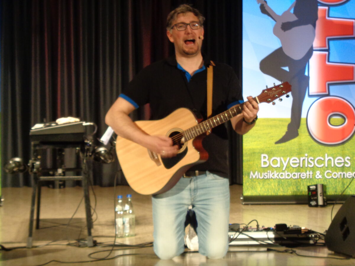 Nur knapp 100 Zuschauer waren in die Sophie-Scholl-Realschule Weiden gekommen, um das neue Programm „Gmahde Wiesn“ von Stefan Otto zu erleben. Der sympathische Niederbayer ließ sich davon nicht beirren und präsentierte Musik-Kabarett vom Feinsten.