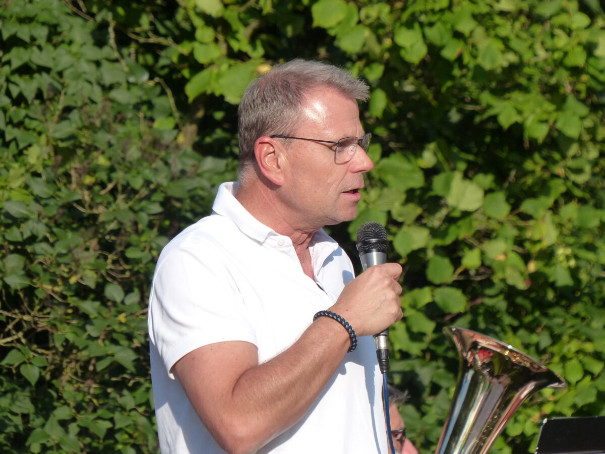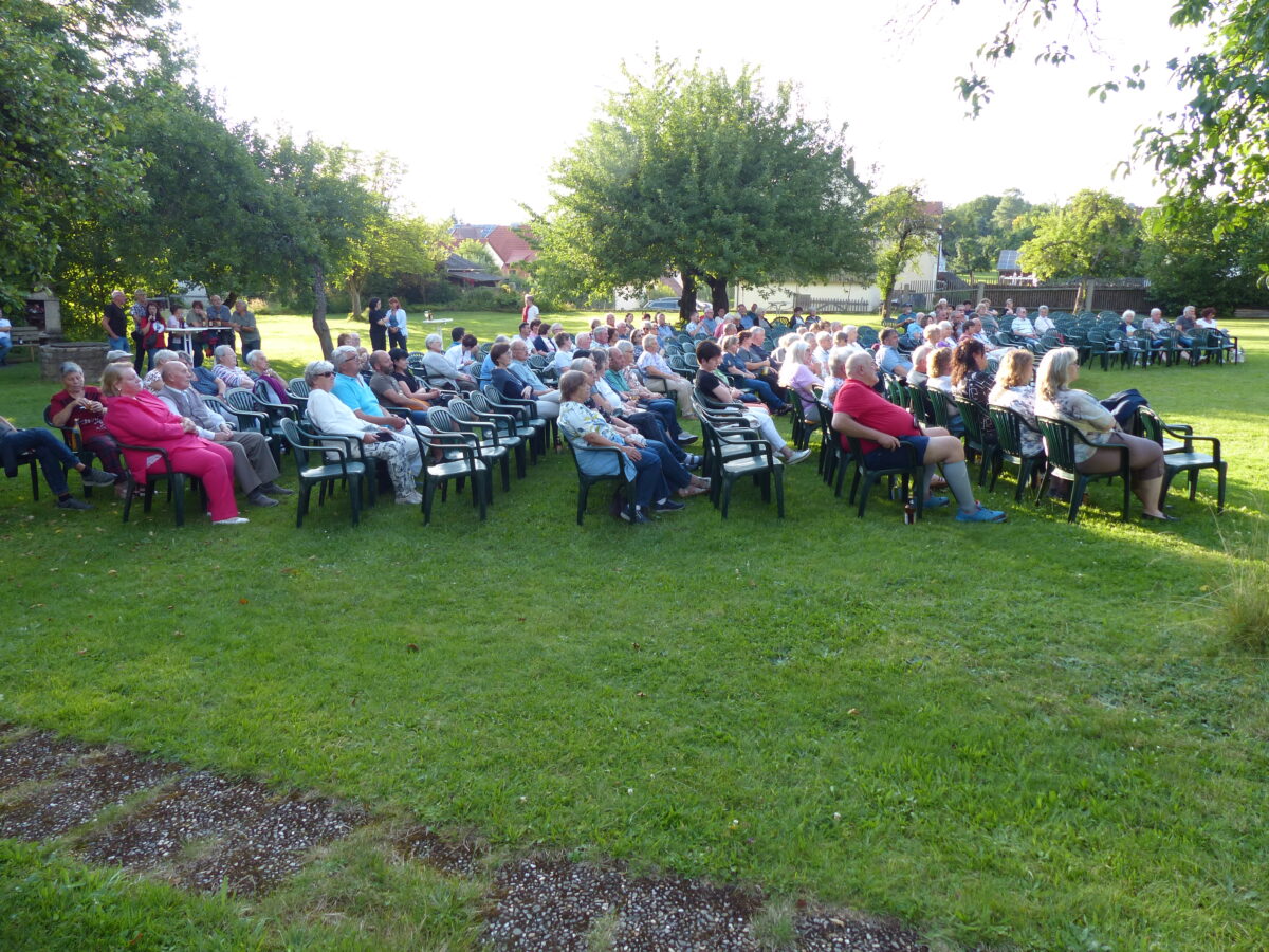 Bürgermeister Karlheinz Budnik, er war genauso begeistert von den Darbietungen wie die anderen Serenadenbesucher, freute sich, dass diese Serenade so gut angenommen wird. Der Dank galt auch Pfarrer Hubert Bartel für die zur Verfügung Stellung des Pfarrgarten. Die Kulisse im Pfarrgarten ist wie geschaffen für eine Serenade.