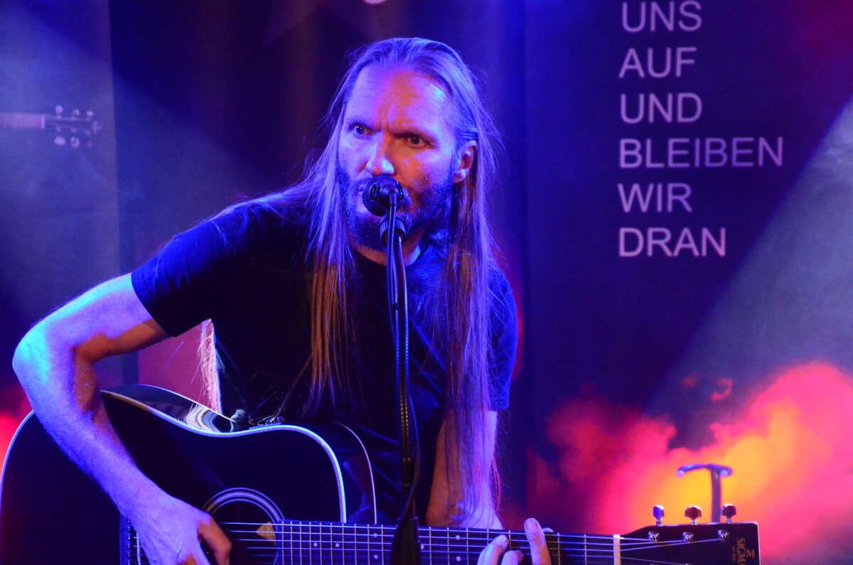 Im „Parapluie“ nahm er die Gäste mit auf seine Reise zu den Irrungen und Wirrungen des Seins, um sie hinterher mit einem Augenzwinkern ein klein bisschen reicher zu machen. Sein Gespür für den Augenblick ist sprichwörtlich. Wie auch sein Leitsatz: „Machen wir uns auf und bleiben wir dran.“ Mit seinen poetisch berührenden Texten und seiner musikalischen Freude an Loops und Gitarre schaffte er es, die Herzen seines Publikums zu erreichen.