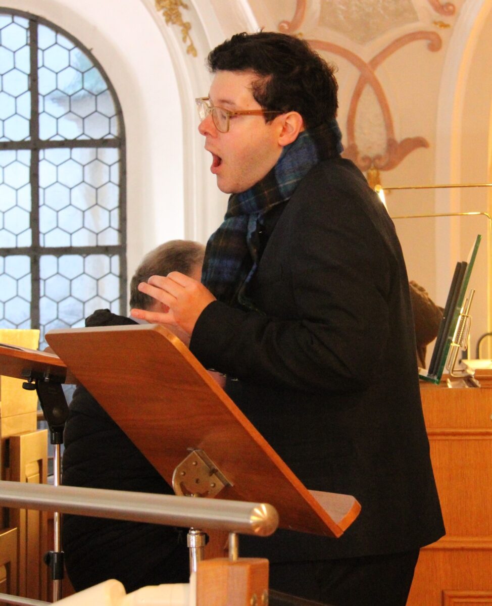 Der Neustädter Bariton Raphael Ernst ist den Kirchgängern auch als Mitglied des Kirchenchors von St. Georg bestens bekannt. Gefühlvoll und voll Leidenschaft interpretierte der 29-jährige Mittelschullehrer unter anderem „Mariä Wiegenlied“ von Max Reger oder „Hört der Engel helle Lieder“ von Helmut Barbe. Zu den musikalischen Höhepunkten darf man das „Ave Maria“ von Luigi Cherubini und Georg Friedrich Händels „Tochter Zion“ zählen, bei denen alle drei Akteure gemeinsam mitwirkten. Nach lange anhaltendem Beifall gab es das bekannte „Contique de Noel“ von Adolphe Adam als Zugabe.