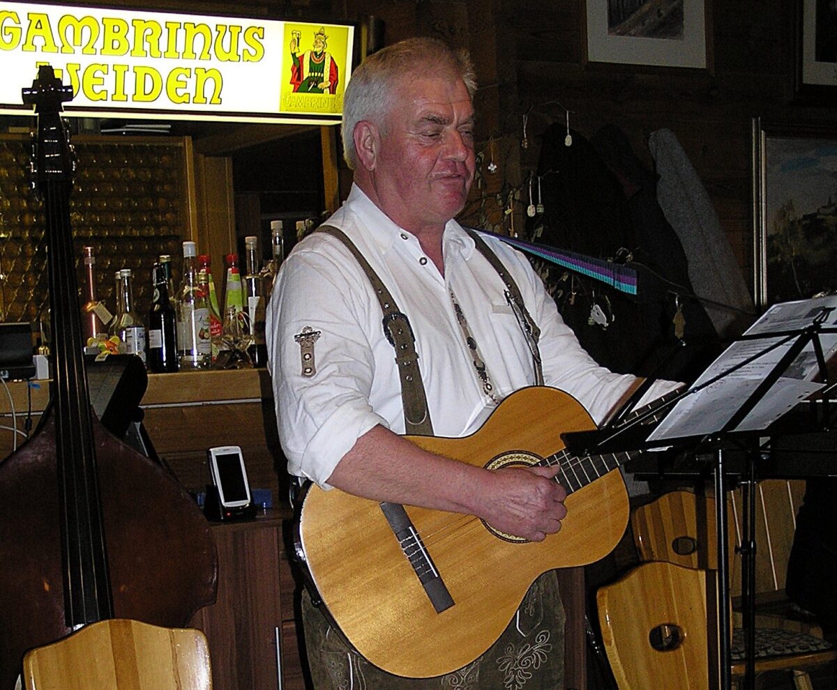 Die Wirtshauseckmusik, deren Musikanten aus der ganzen Oberpfalz kommen und bei der auch der zweite Vorsitzende des OWV Weiden, Hans Fröhlich, mitspielt, spielten unter anderem selbst komponierte Stücke mit Knopfharmonika, Stehbass und Hackbrett. Ein Höhepunkt waren die alten Volkslieder und Begebenheiten, von denen die beiden Frauen des Josefshofer Hausgesangs erzählten und sangen, sowie die Couplets und Schnadahüpferln von Josef Kämpf aus Eschenbach, der sich selbst auf der Gitarre begleitete.